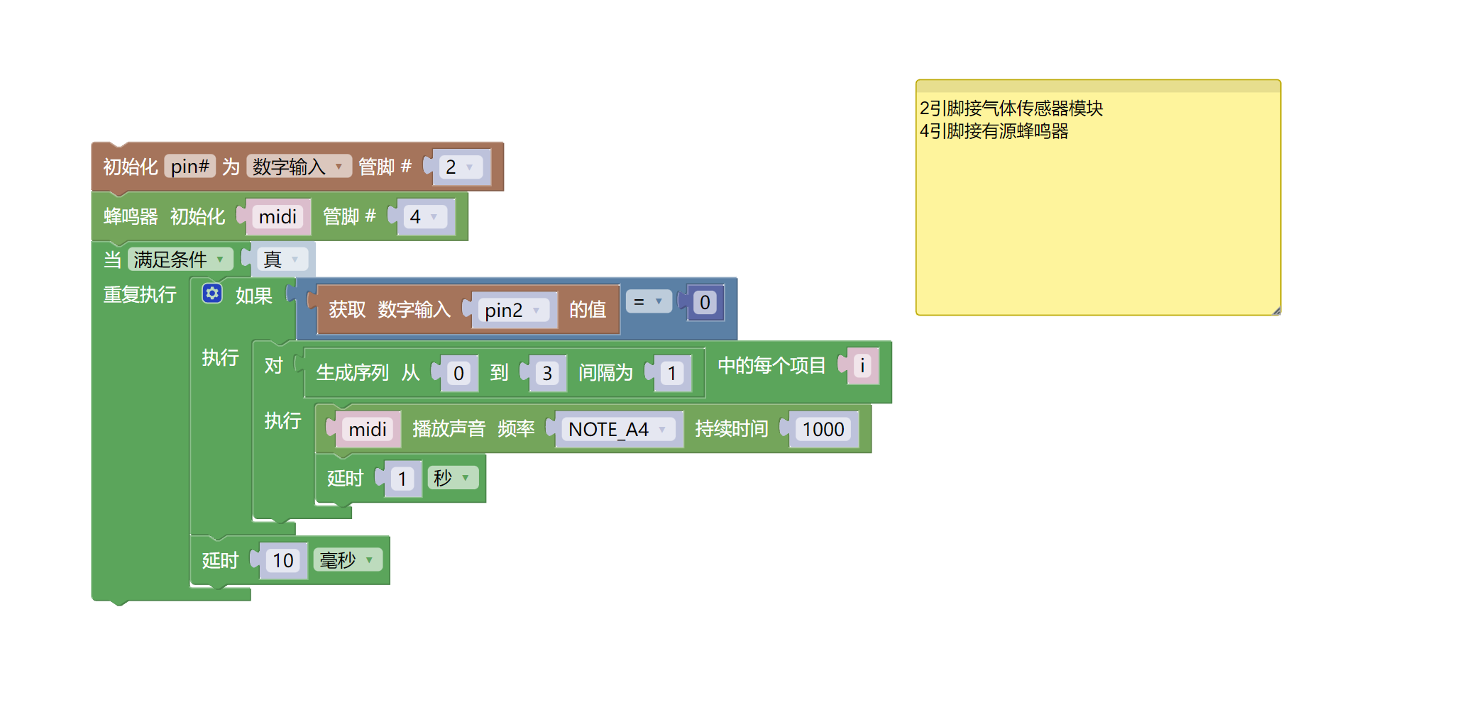 //当烟雾传感器检测气体或者烟雾时输出低电平(0),