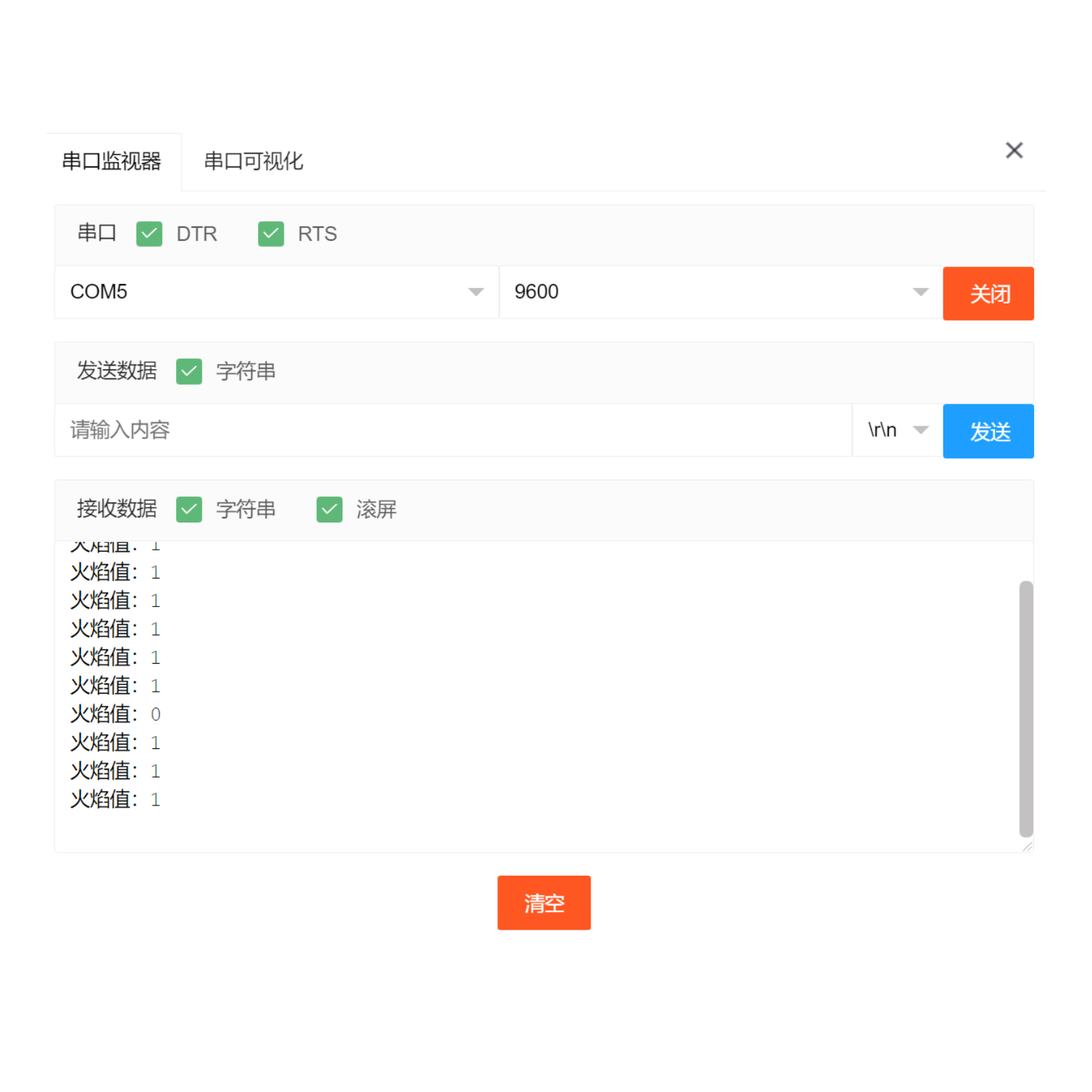 Serial.print("火焰值:");