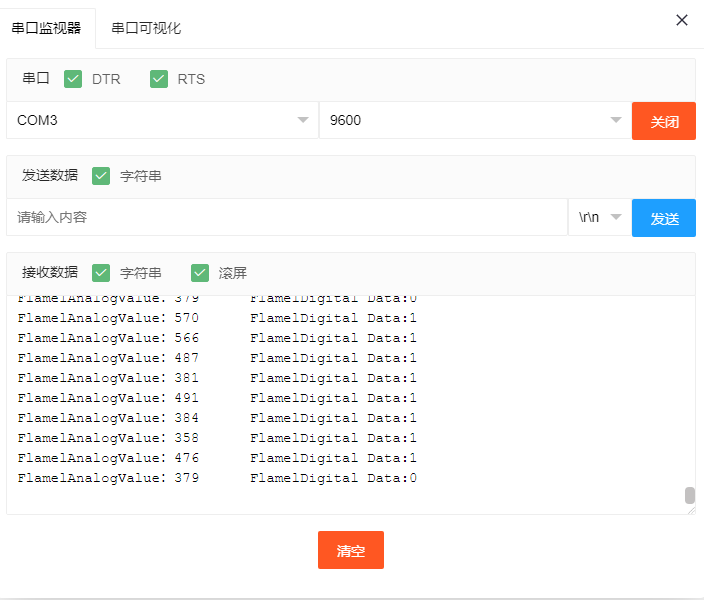 Serial.print(FlamelAnalogValue);//打印火焰传感器模拟值