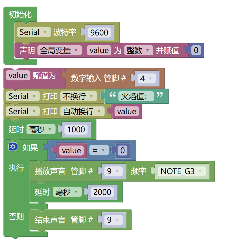 通过实验,我们可以观察到当火焰传感器检测到火焰时,串口输出低电平0,蜂鸣器响起;当没有检测到火焰时,串口输出高电平1,蜂鸣器不响。火焰传感器的模拟值会根据火焰大小和离火焰的距离的近远而变小;当读取的模拟值小于阀值时输出低电平,如果大于阀值则输出高电平。阀值大小可以通过调节可调电阻的大小来调节。