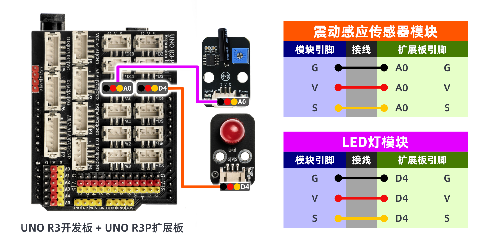 //A0接敲击传感器,D4接led灯,晃动敲击传感器,led闪烁。