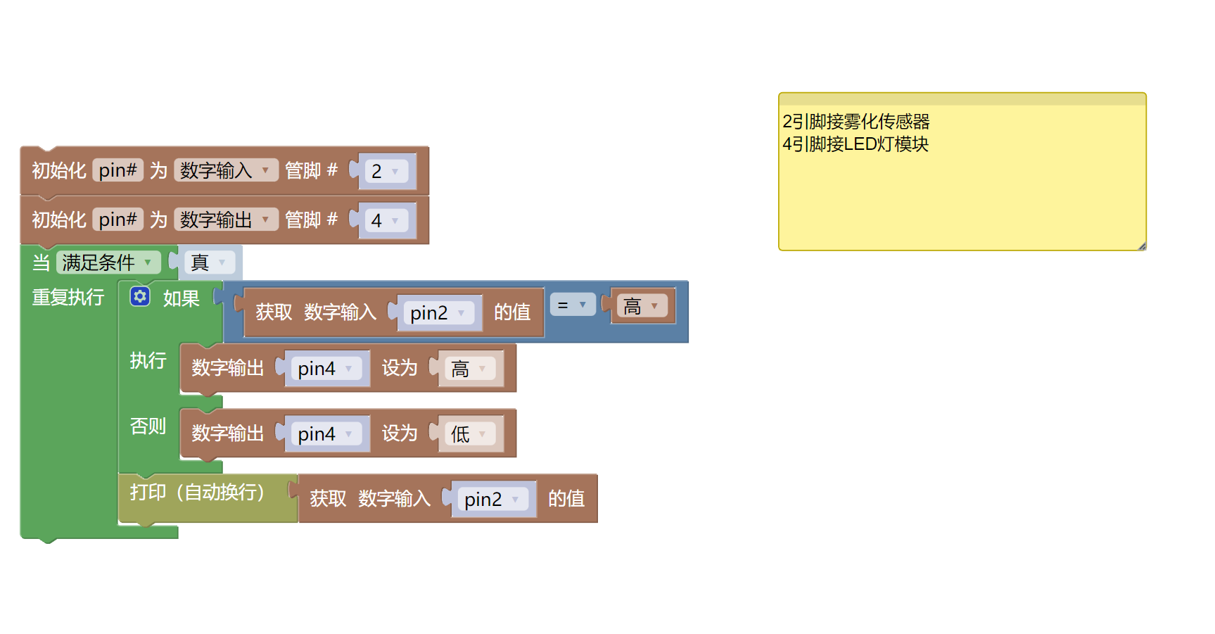 //当检测到雾气时,输出高电平(1),模块信号指示蓝灯亮起;