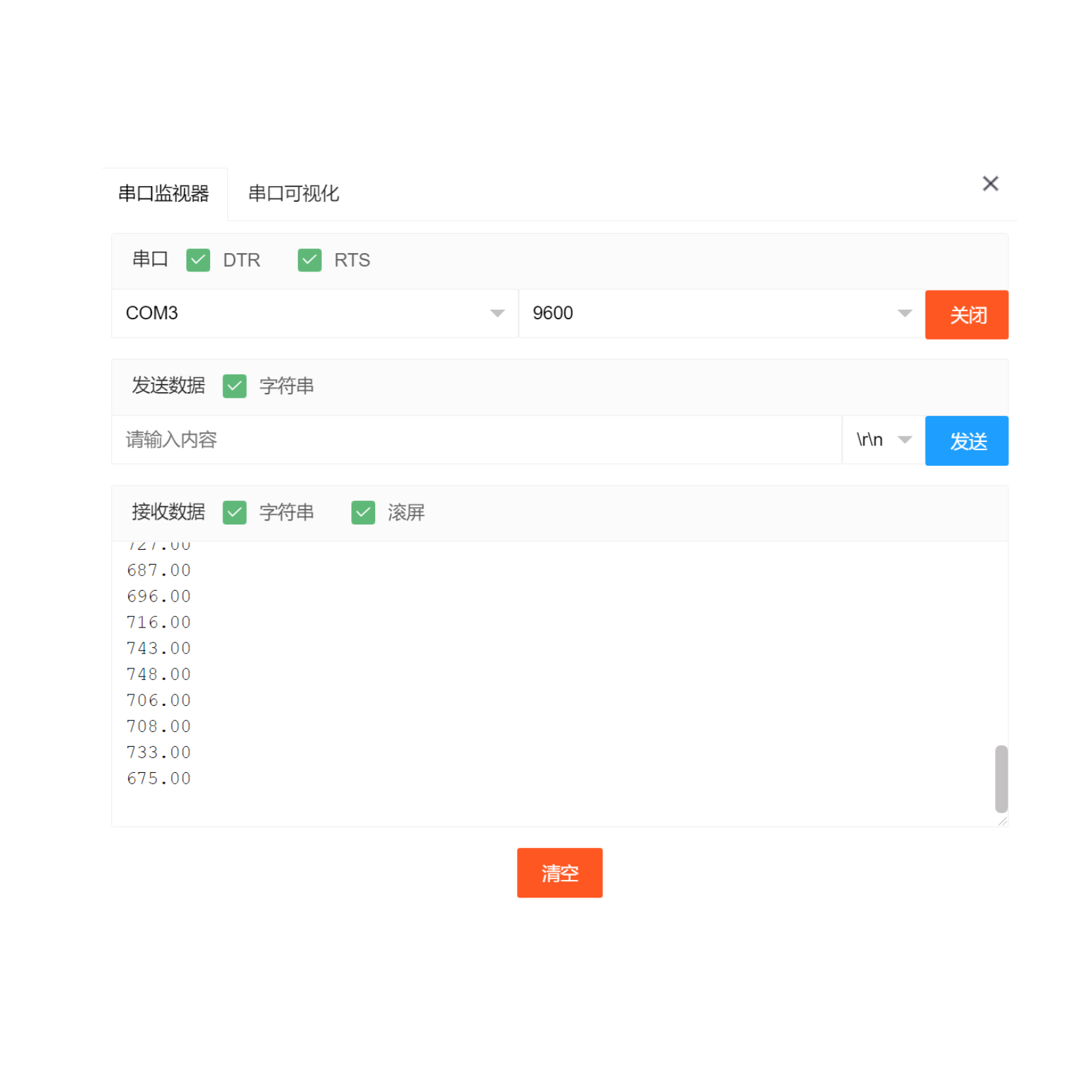 Nachdem die Kabel an den Gerät angeschlossen sind, laden Sie das obige Programm auf die Arduino UNO Entwicklungsplatine hoch, öffnen Sie den Mxily seriellen Monitor, legen Sie das Wasserstandssensormodul langsam in das Wasser, und der serielle Ausgang gibt den Analogwert des Wasserstandssensors zurück, der größer als 700 (entspricht mehr als 3 cm) ist, und der Piepser ertönt.