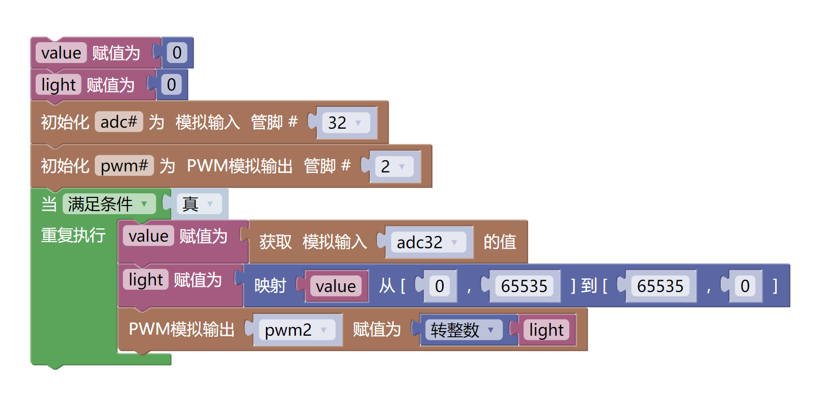 pwm2.duty_u16(int(light))7、米思齐 Mixly 示例程序(图形化语言) in Deutsch
