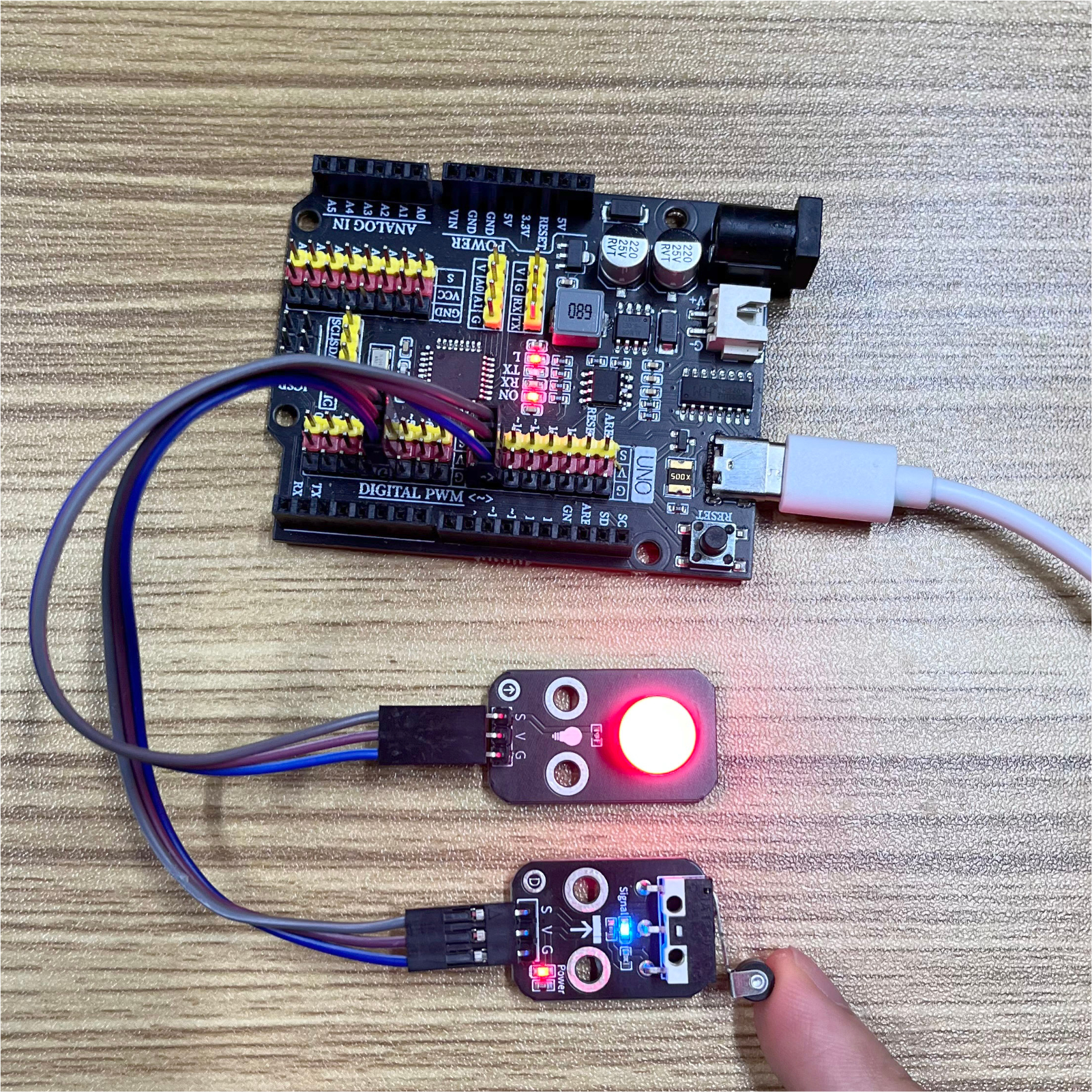 //碰撞开关接uno开发板D4引脚;LED灯模块接D9引脚