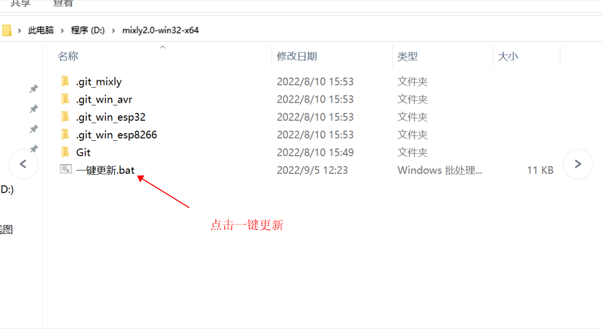 Der heruntergeladene ist ein gepacktes Programmdatei von Misqi.Nachdem der Download des Archivs abgeschlossen ist, entpacken Sie es in den Root-Ordner eines der Festplatten Ihres Computers (empfohlen: nicht auf dem Systemlaufwerk), und benennen Sie den Ordner Mixly2.0 um (keine chinesischen Zeichen), und legen Sie ihn in den Root-Ordner Ihres Computers.