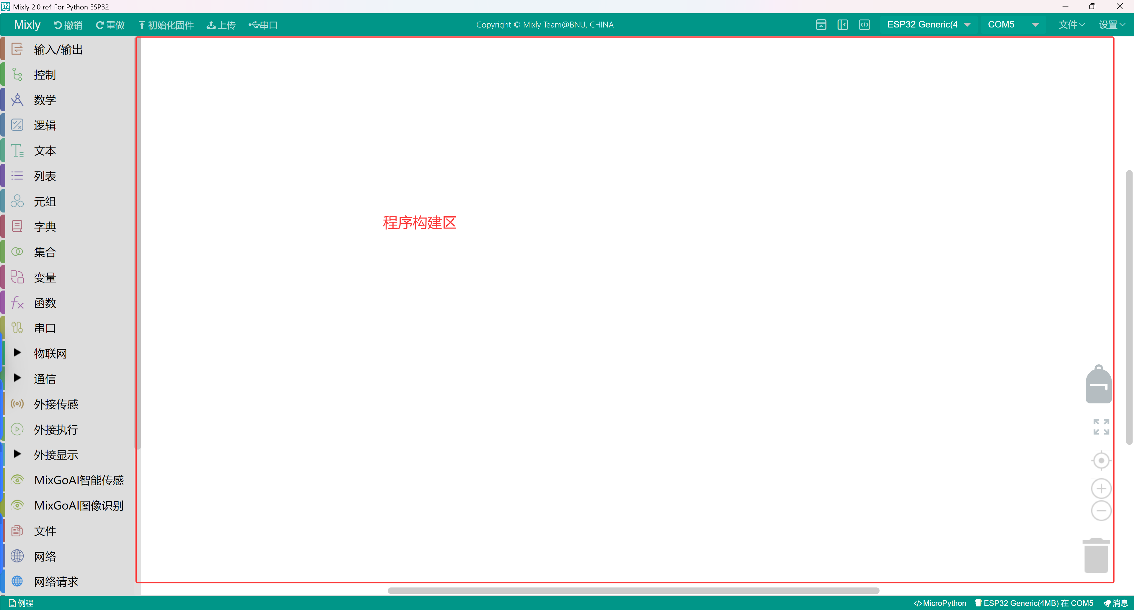 Die Software wurde installiert, wir klicken auf das Mixly-Icon auf dem Desktop des Computers, um das Software zu öffnen, und wählen Python ESP32