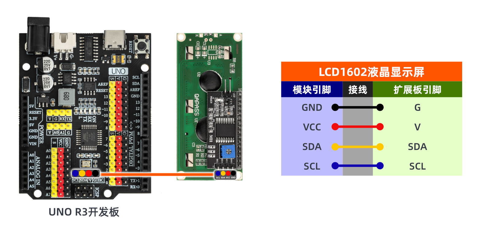 //scl引脚接开发板scl(A5),SDA引脚接开发板SDA(A4);