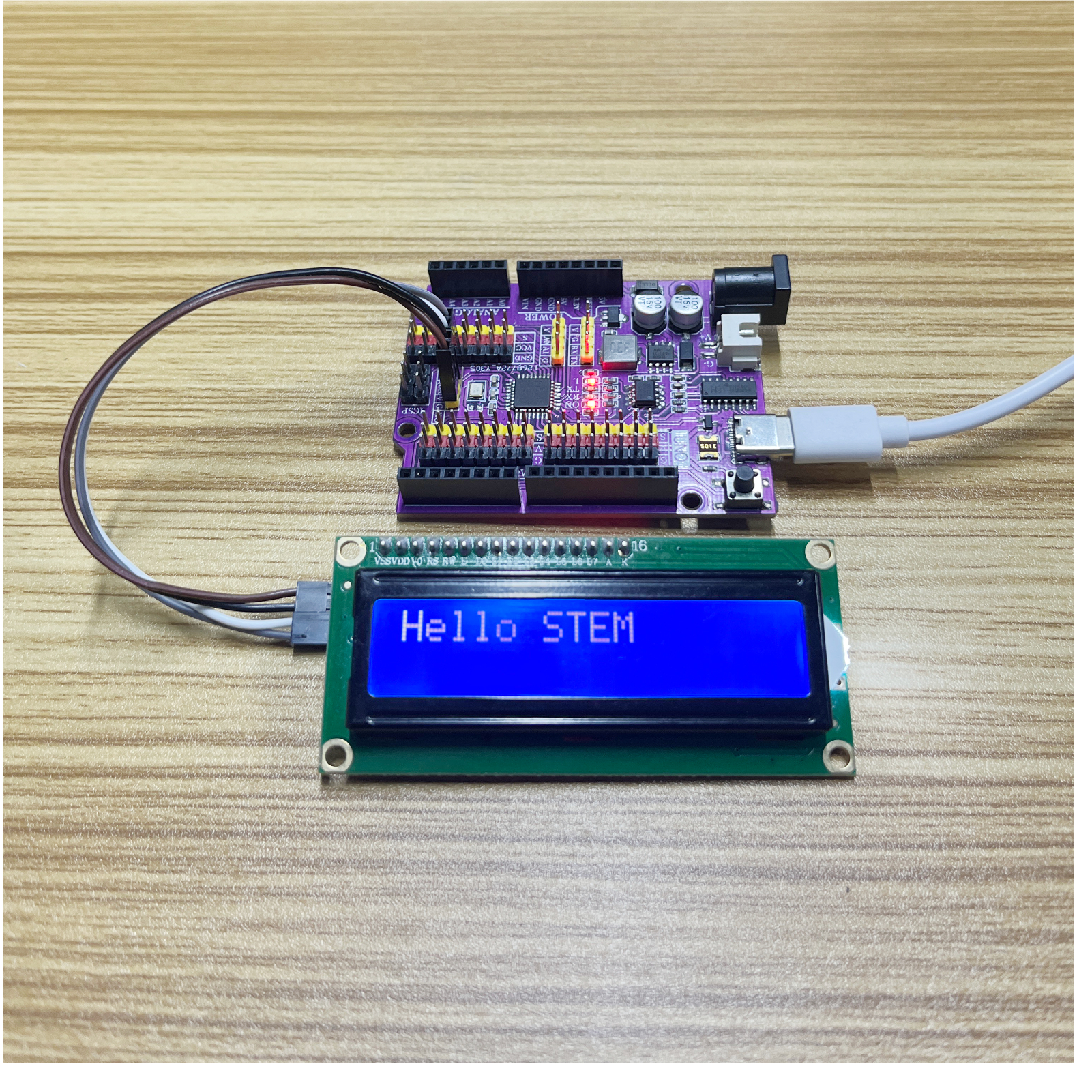 Auf dem LCD1602-Touchscreen werden die Texte und Bilder unserer Programmeingabe angezeigt.