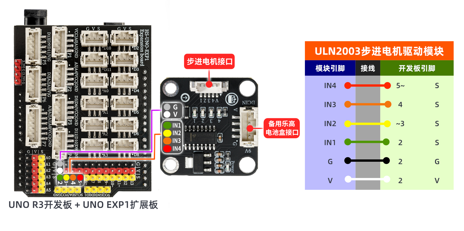Dieses ULN2003A ist ein hoher Spannungs-, großer Strom-Darlington-Trafo-Array, das oft zur Ansteuerung von Relais, LED-Leuchten, Ventilen und Schrittmotoren verwendet wird.Es gibt sieben unabhängige Kanäle, die die vier Windungen des Schrittmotors getrennt steuern können. Jeder Kanal kann bis zu 500mA Strom aufnehmen, was ausreicht, um kleine bis mittlere Schrittmotoren anzutreiben.Dieser Treiber wird durch ULN2003A zur Steuerung eines 5-Leiter-4-Phasen-Schrittmotors verwendet.Der Kern des Antriebs der Schrittmotoren besteht darin, die Rotation des Motors durch Ändern der Stromreihenfolge und -sequenz der Motorwicklungen zu erreichen.ULN2003A jeder Kanal entspricht einem Spulenkreis des Schrittmotors. Durch die Kontrolle der Öffnung und Schließung dieser Kanäle können wir die Schrittbewegung des Motors steuern.Normalerweise haben Schrittmotoren vier verschiedene Schrittmodi: Einphasen-, Zweiphasen-, Halbschritt- und Vollschrittmodus. In jedem Modus variiert der Drehmoment und die Genauigkeit des Motors.