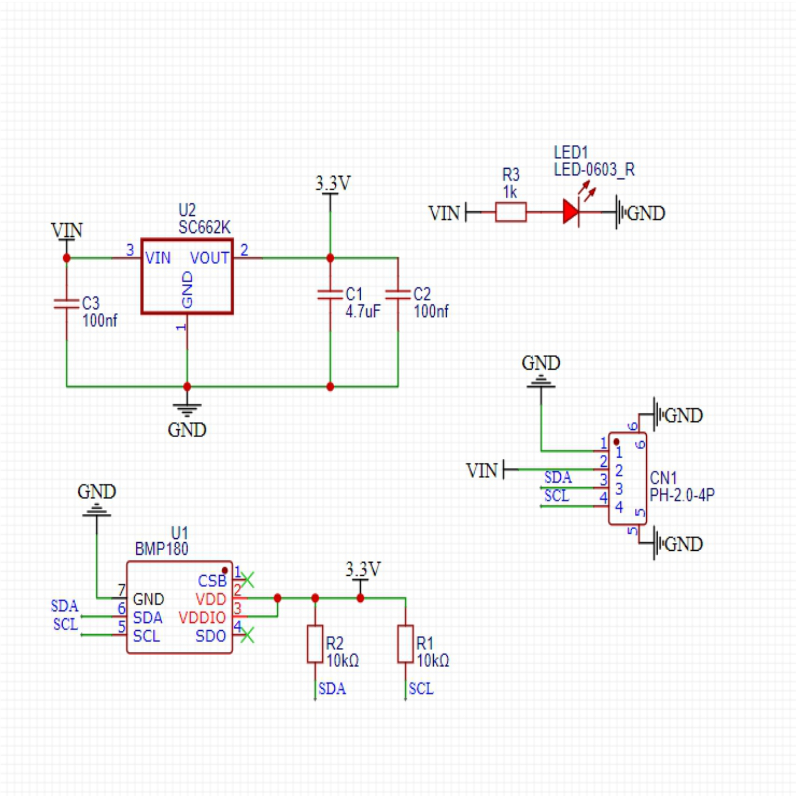 The BMP180 barometric pressure sensor is a device or apparatus that can sense gas pressure and convert it into usable output signals according to a certain regularity. Its basic function is to accurately measure the pressure value of the gas and convert the pressure signal into electrical signals and other signal forms that are convenient for processing and transmission, providing a basis for subsequent display, control, and data processing.