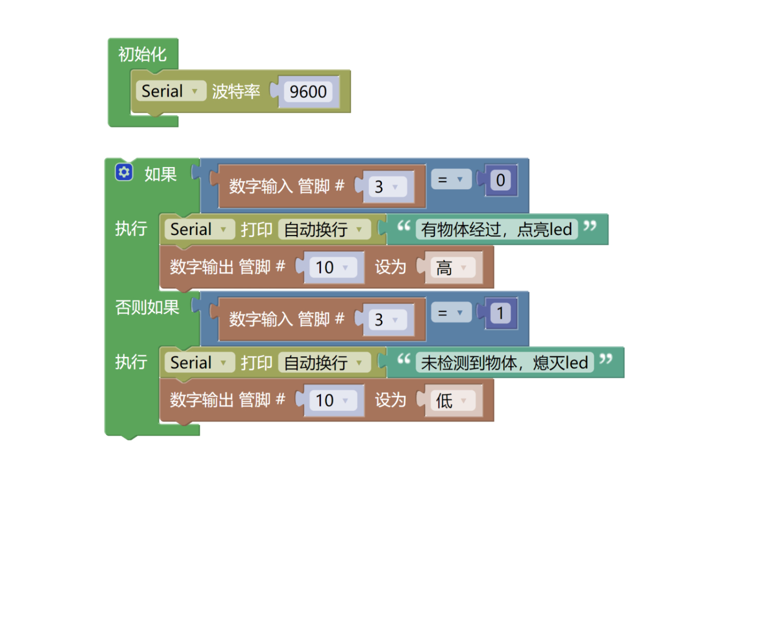 Serial.println("ๆชๆฃๆตๅฐ็ฉไฝ๏ผ็็ญled");