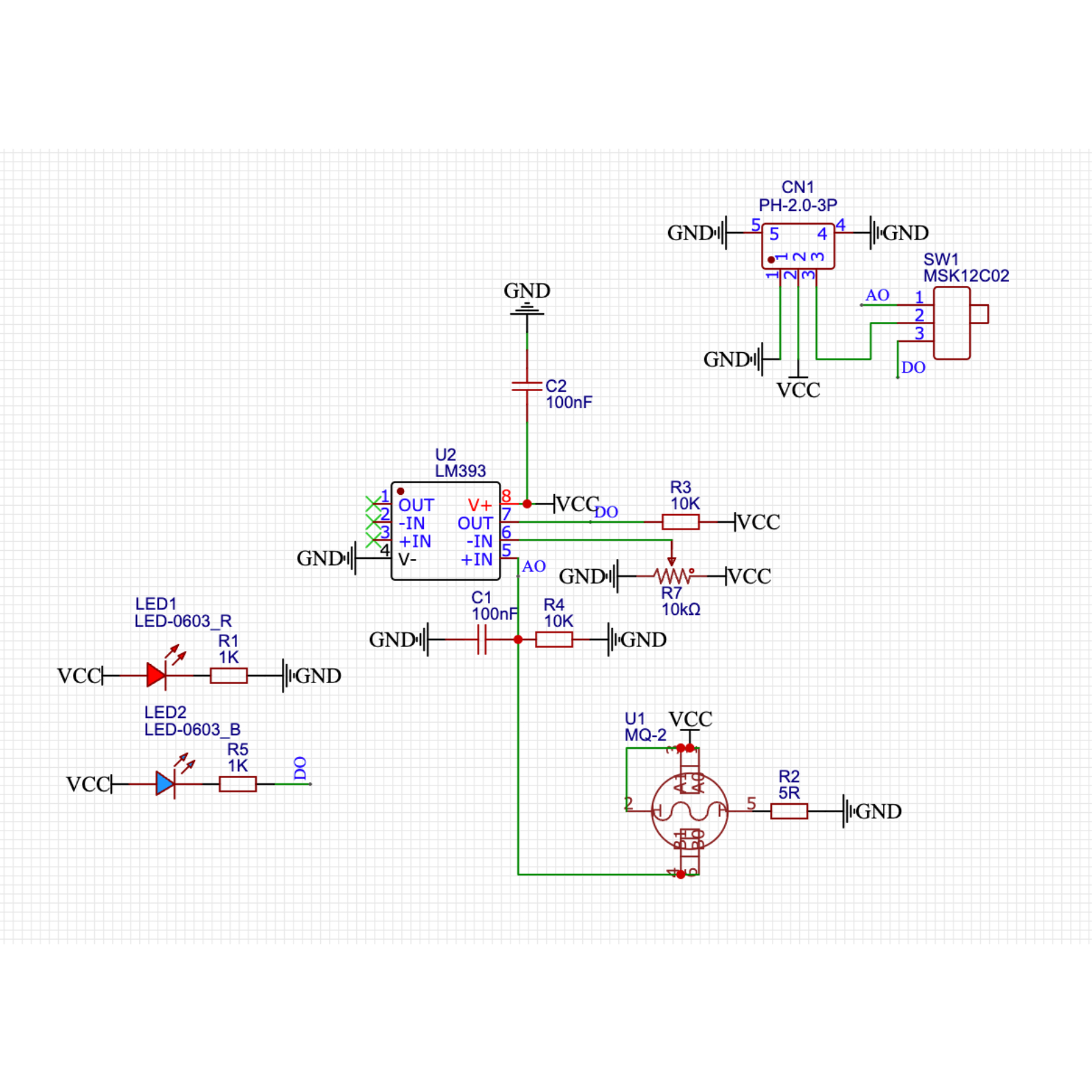 The gas-sensitive material used in the MQ-4 gas sensor probe is tin dioxide (SnO2) with a low electrical conductivity in clean air.When the sensor is in an environment with flammable gases, the conductivity of the sensor increases with the increase of the concentration of flammable gases in the air.Using a simple circuit, the change in conductivity can be converted into an output signal corresponding to the gas concentration.The gas sensor has high sensitivity to liquefied gas, propane, and hydrogen, and the detection of natural gas and other flammable vapors is also ideal.This sensor can detect a variety of flammable gases and is a low-cost sensor suitable for a variety of applications.