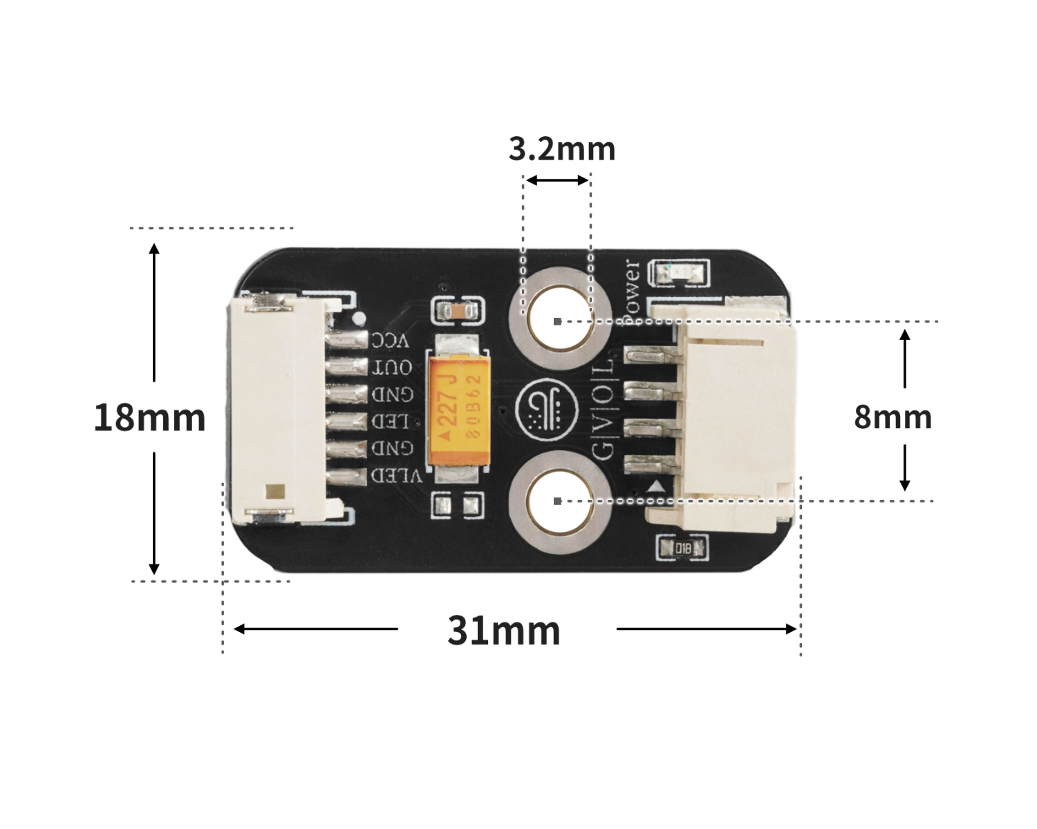 Dust and smoke sensor, usually used to detect the concentration of dust, smoke and other particulate matter in the environment. When dust and smoke particles pass through the detection area in the air, the light will change due to scattering and blocking by the particles, and the sensor will convert the light signal into an electrical signal to reflect the concentration of particles.
