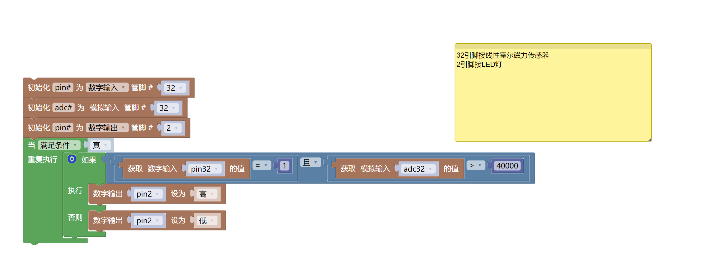 //传感器如果当作数字量开关,只N极能触发,输出低电平。