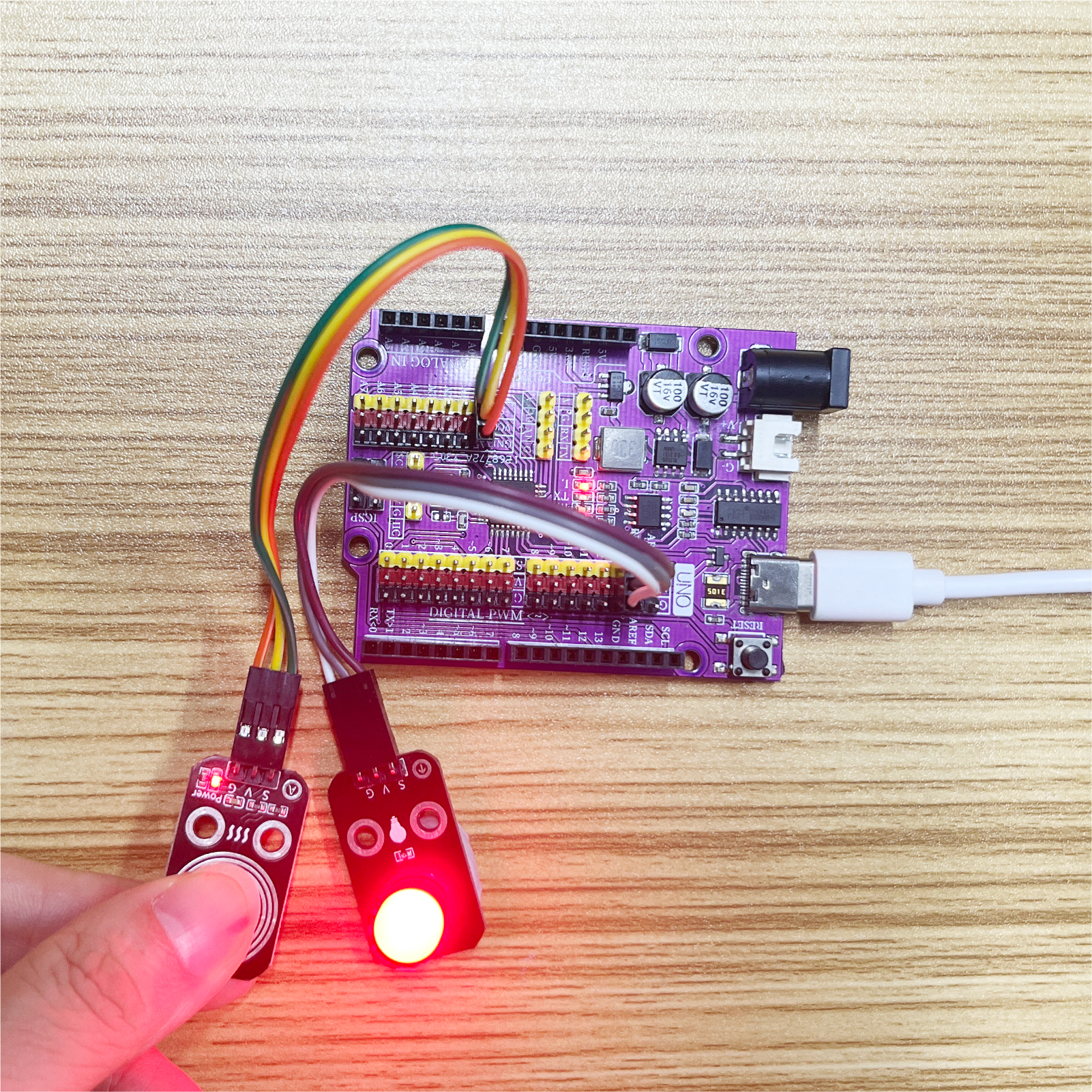//led็ฏๆจกๅunoๅผๅๆฟๆฅD13ๅผ่๏ผๆฐด่ธๆฐไผ ๆๅจๆฅunoๅผๅๆฟA0ๅผ่
