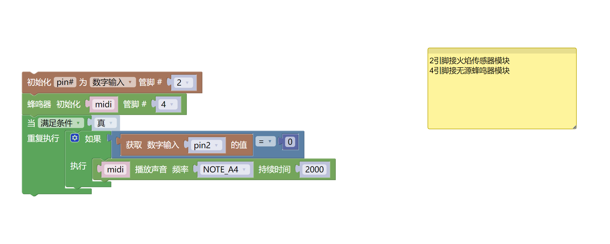 midi.pitch_time(440, 2000)7, Mixly example program (graphical language)