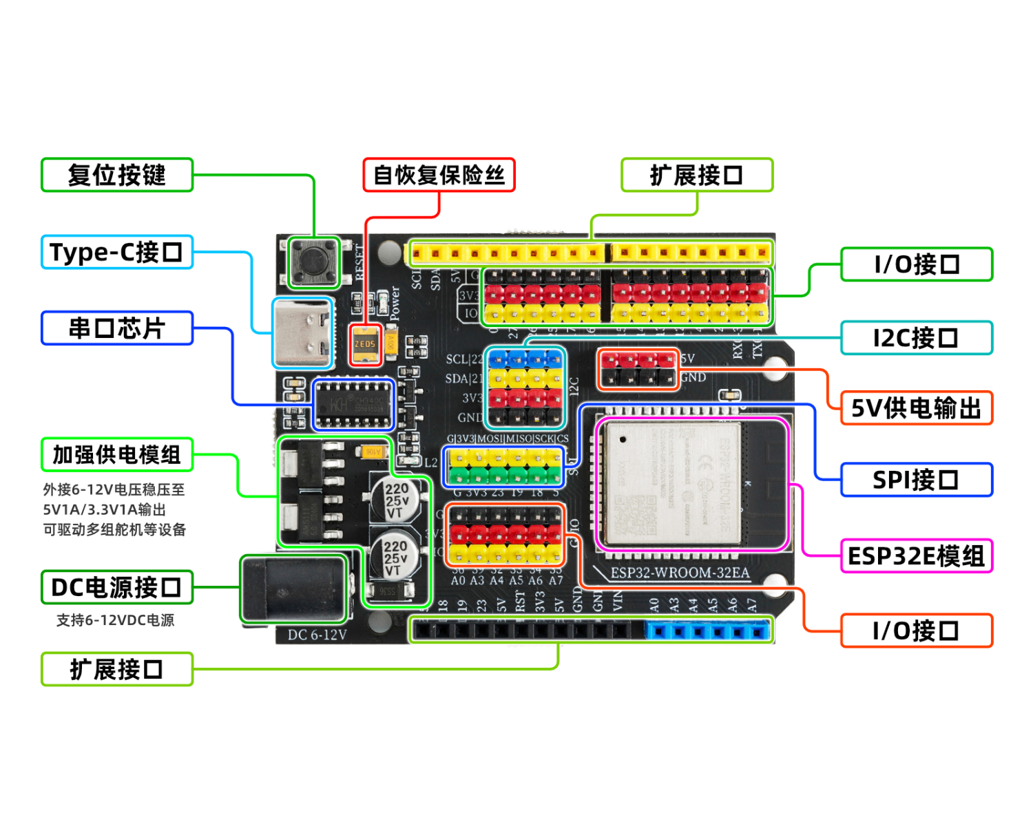 6, on-board 2.54mm pitch G|V|S expansion pin interface, without expansion board usage