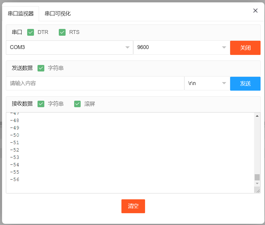 Through experimental analysis, the rotary encoder is a unrestricted rotating device, the count increases with clockwise rotation, the count decreases with counterclockwise rotation, and the count resets to zero when the rotary encoder button is pressed.As shown in the figure: Open the Mxily serial port monitor, turn the rotary encoder knob, and the serial port outputs numbers.