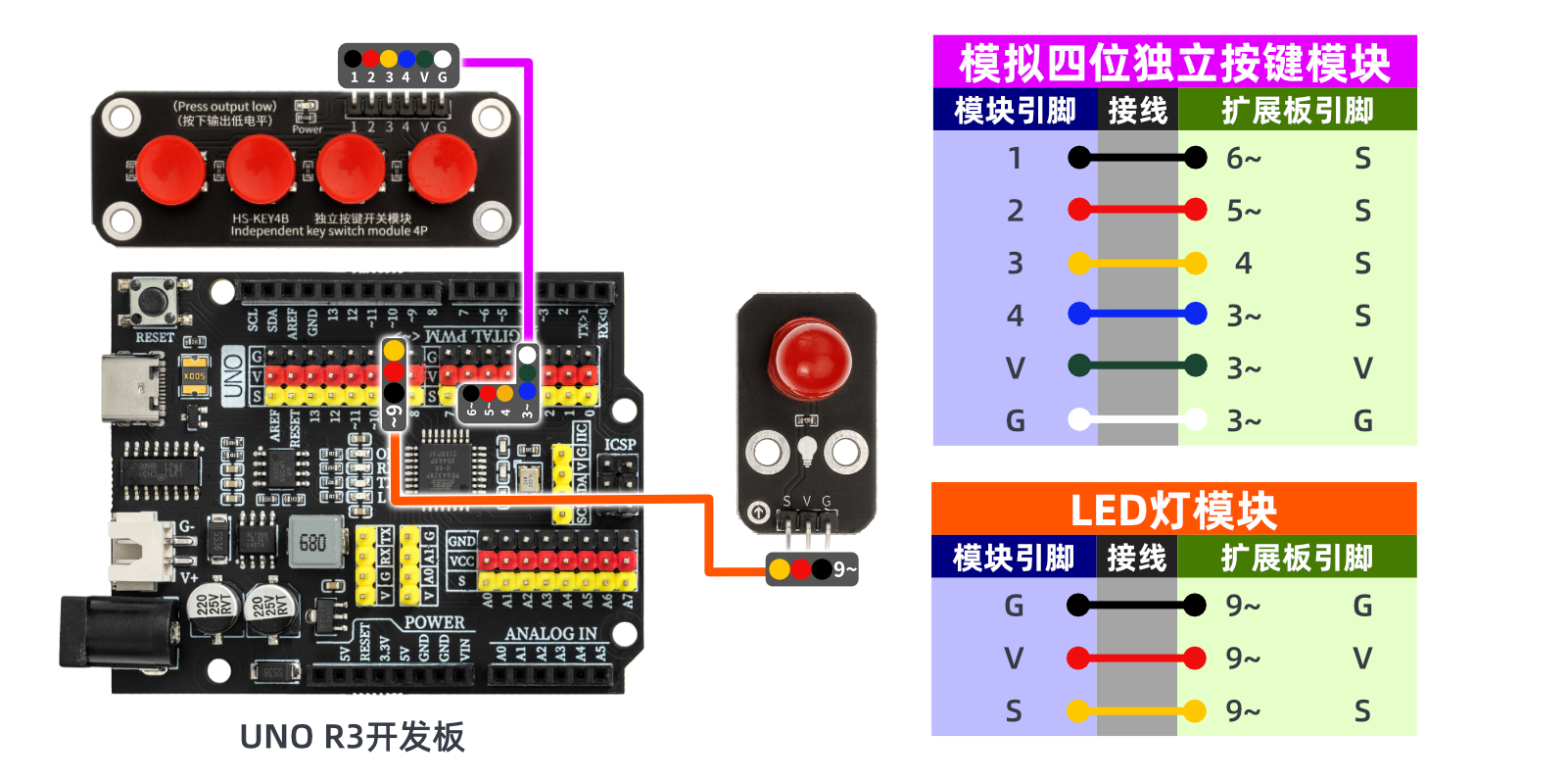 //led็ฏๆฅD9ๅผ่๏ผๅไฝๆ้ฎๆจกๅ1~4ๅๅซๆฅๅผๅๆฟ3๏ผ4๏ผ5๏ผ6