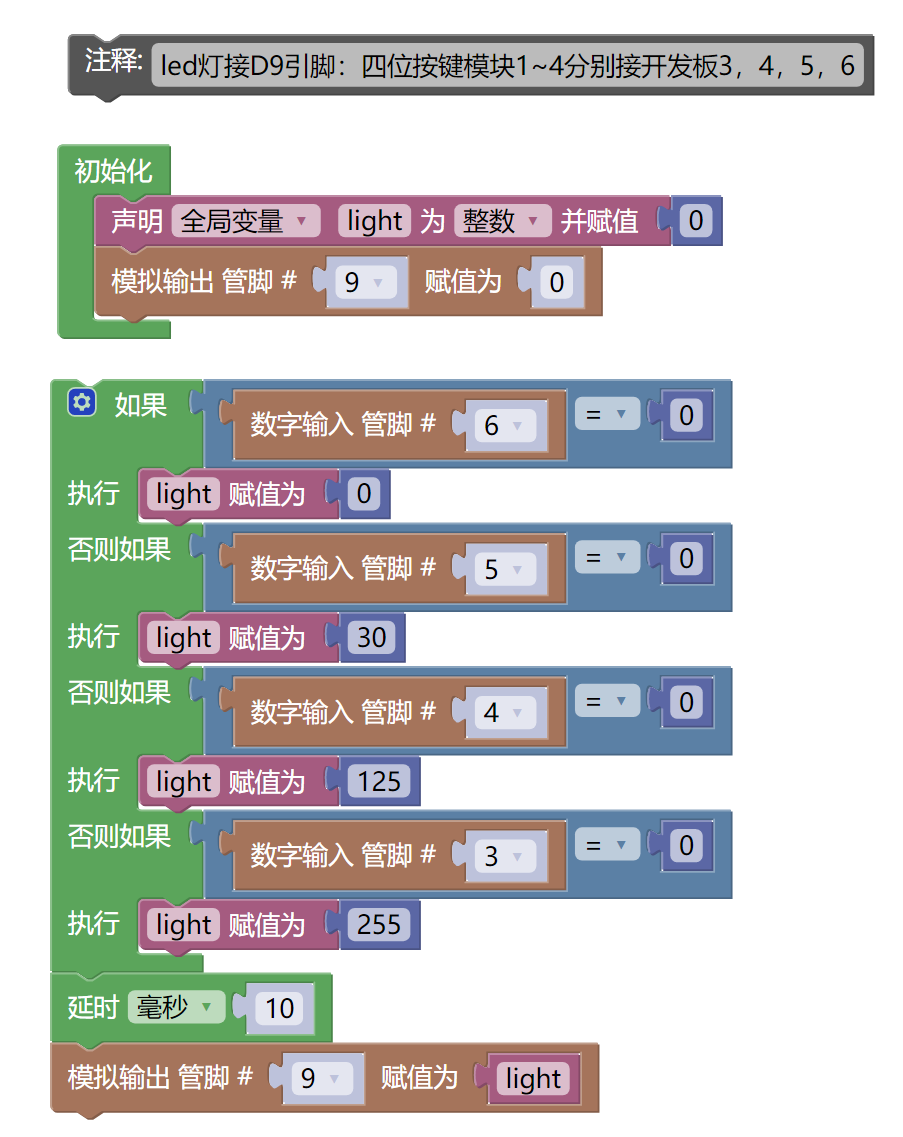 pwm2.duty_u16(light)7, Mixly example program (graphical language)