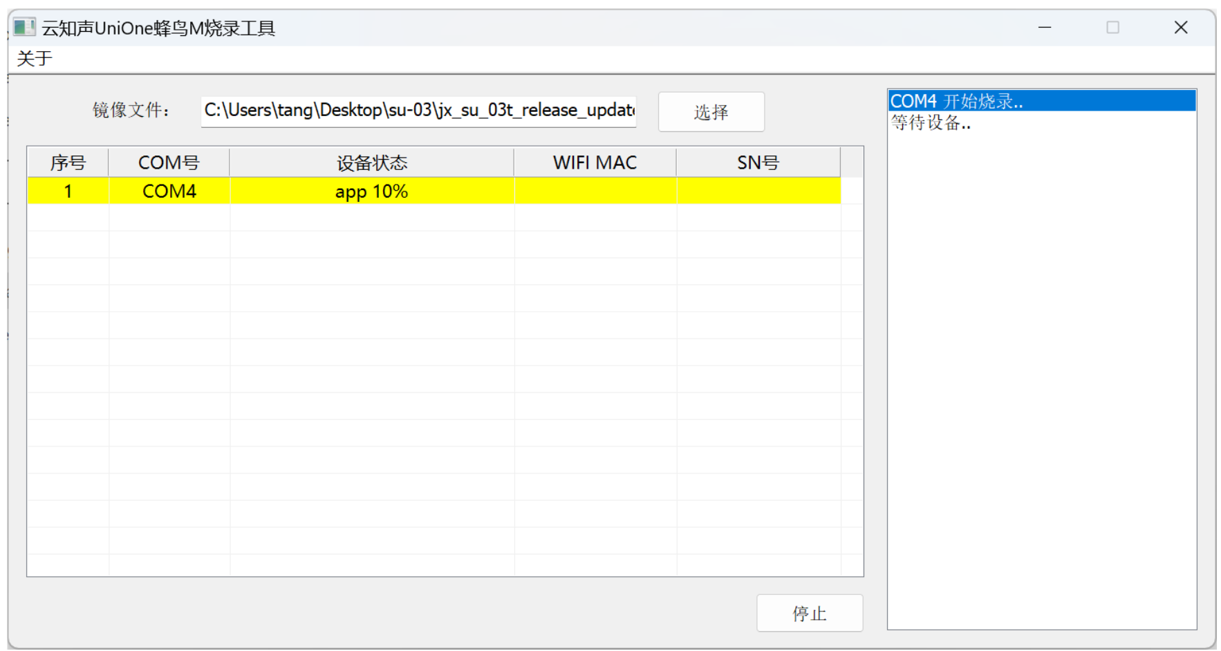 After the device is connected and the program is burned to the development board, you can communicate with the SU-03T voice recognition control module.