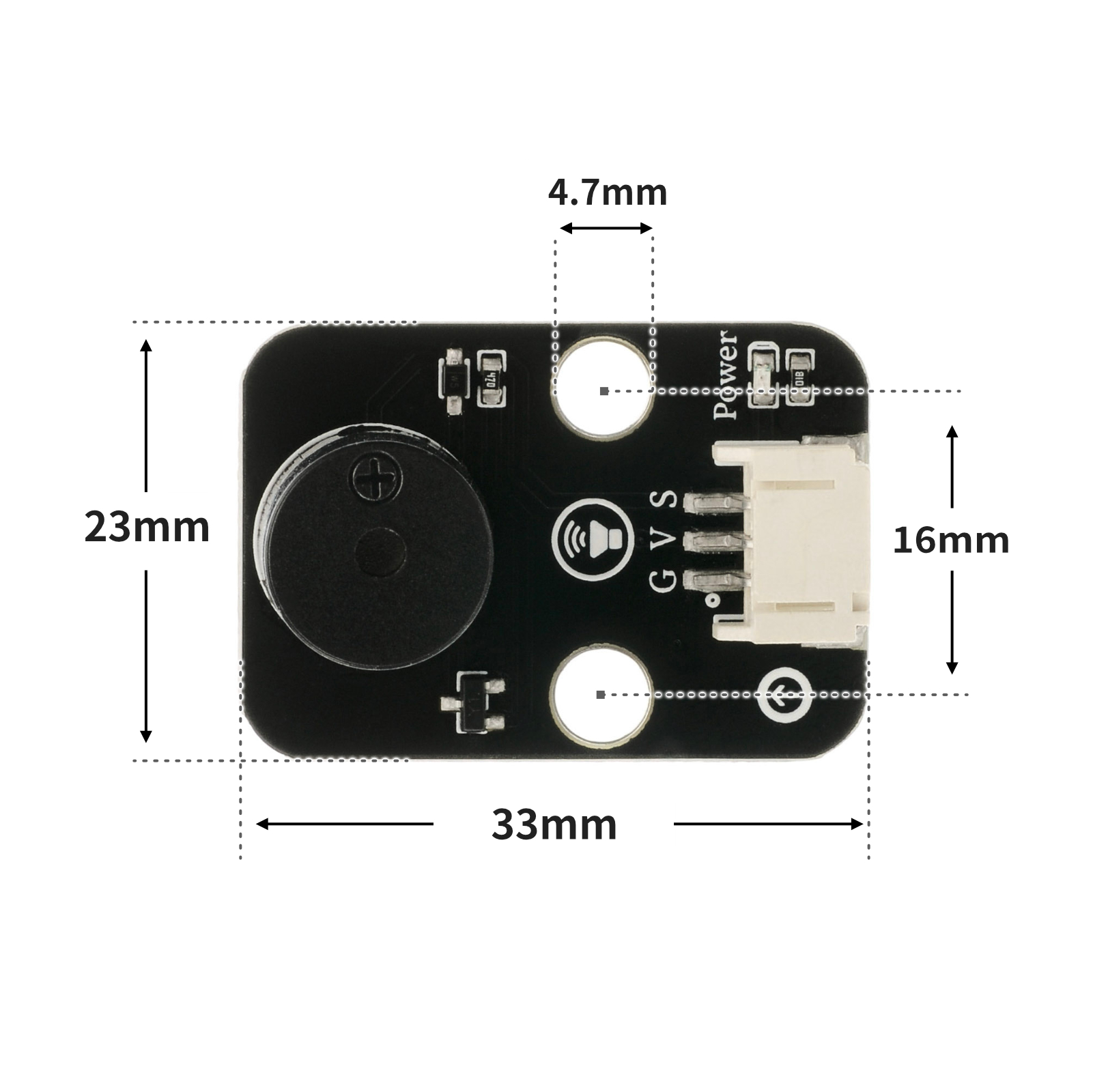 Some appliances often emit a buzzing sound in electrical state, which actually comes from a buzzer, and the讨厌的铃声disliked bell in school is just a bigger buzzer.There are two types of buzzers, one is an active buzzer and the other is a passive buzzer.The terms 'active' and 'passive' do not refer to whether power needs to be supplied, but rather to whether the buzzer has an internal oscillator or not.If you power it on, the active buzzer will make a buzzing sound, but the frequency is fixed.A passive buzzer is a buzzer without an internal oscillator, which does not produce a buzzing sound when powered on. It requires a 2~5 kHz square wave drive, and then different frequency waveforms will produce corresponding sounds.The buzzer module has three pins, where the pin marked '-' is grounded (GND), the middle pin is connected to 5V, and the pin marked "S" is connected to the signal (digital I/O).