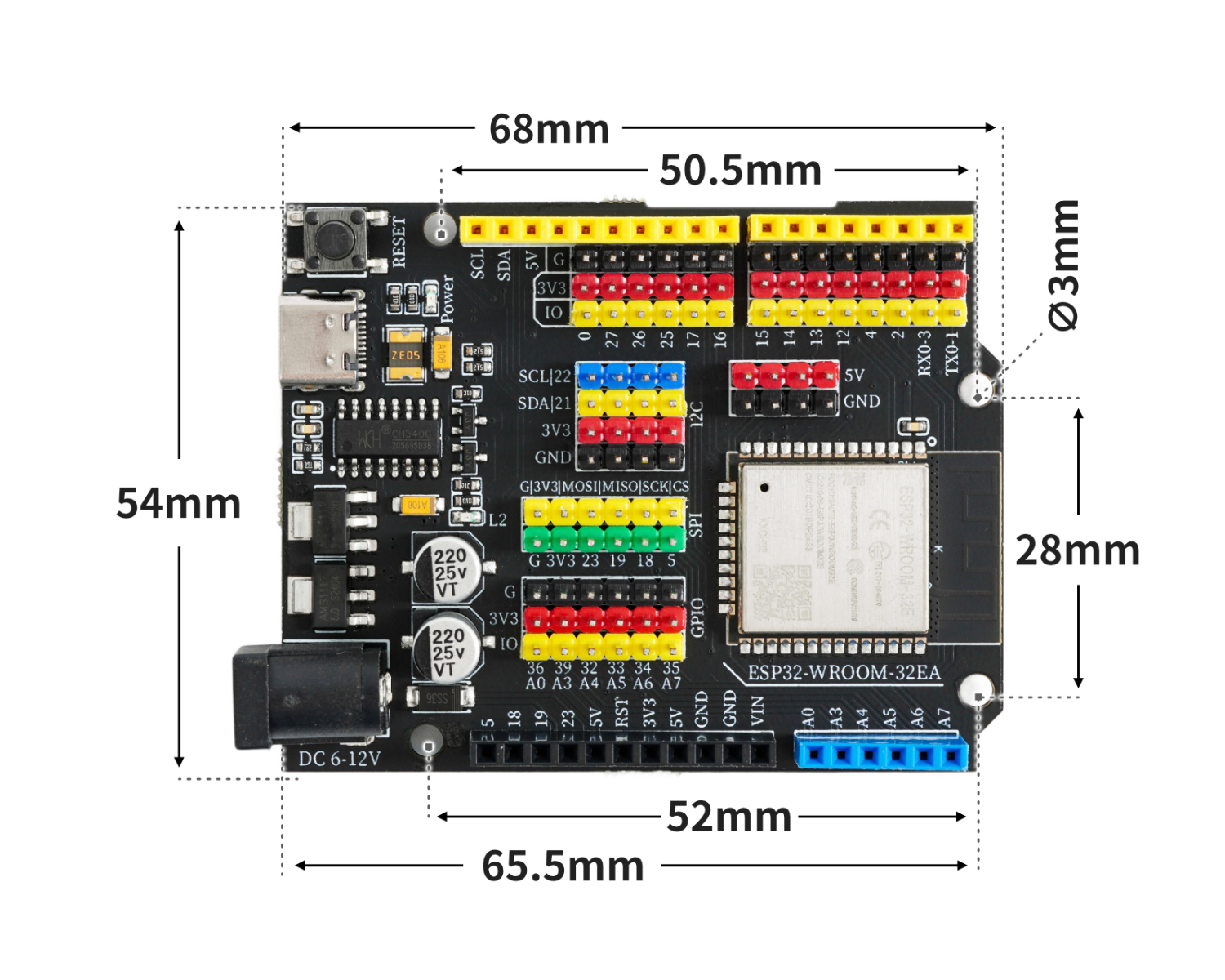 6、板载2.54间距G|V|S扩展排针接口,免扩展板使用