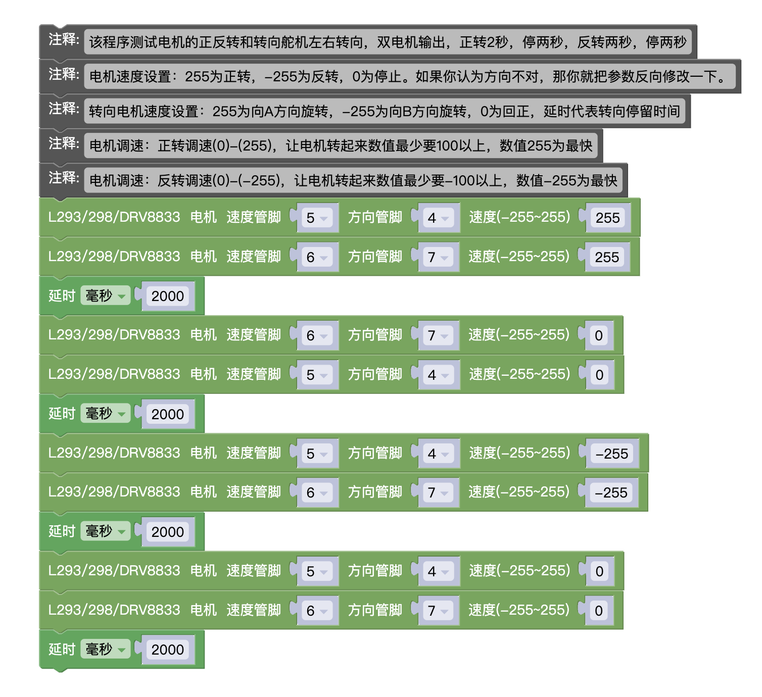 //电机速度设置:255为正转,-255为反转,0为停止。如果你认为方向不对,那你就把参数反向修改一下。