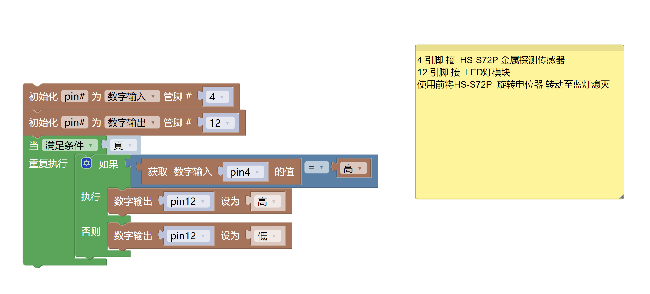 선을 연결한 장치가 준비되면, 해당 프로그램을 UNO-R3 PRO 개발판에 태우고 전원을 켜십시오。металл을 탐지판에 둡니다. 이 때金属이 탐지되면 LED 랜드 모듈이 켜집니다. 그렇지 않으면 꺼집니다.