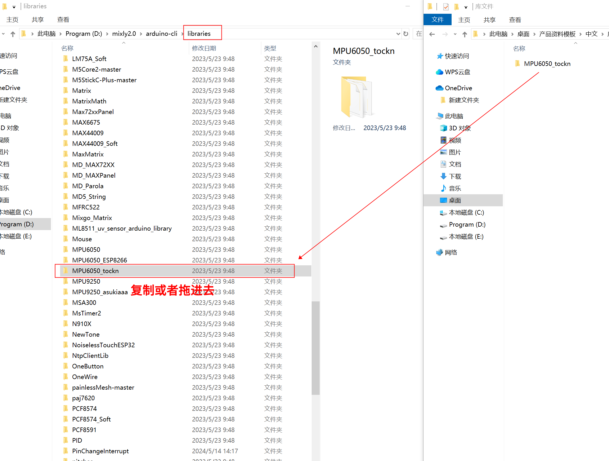 라이브러리 파일을 Arduino IDE 소프트웨어 디렉토리의 libraries 폴더에 복사하면 됩니다: