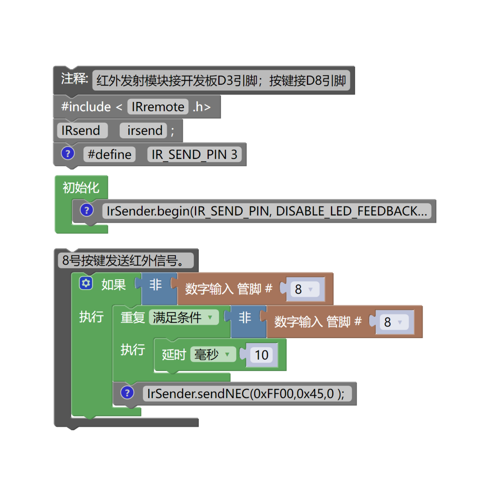 // 启动发送,并指定引脚;开启Arduino主板L灯反馈;