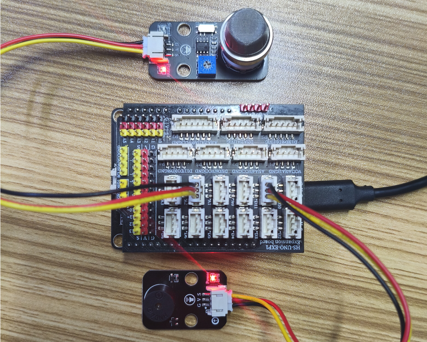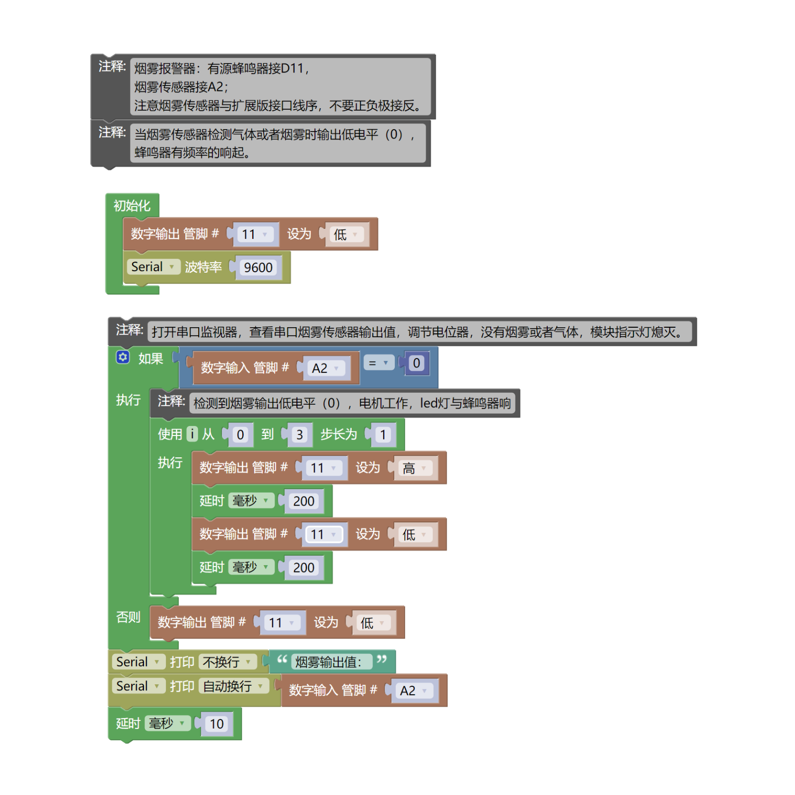//注意烟雾传感器与扩展版接口线序,不要正负极接反。