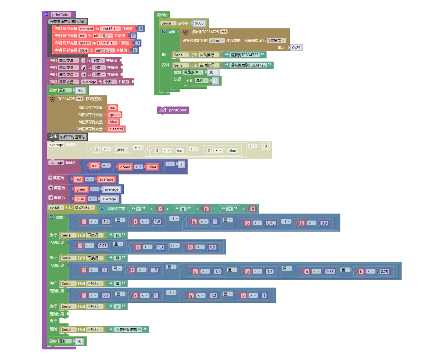 Serial.println("搜索到TCS34725");