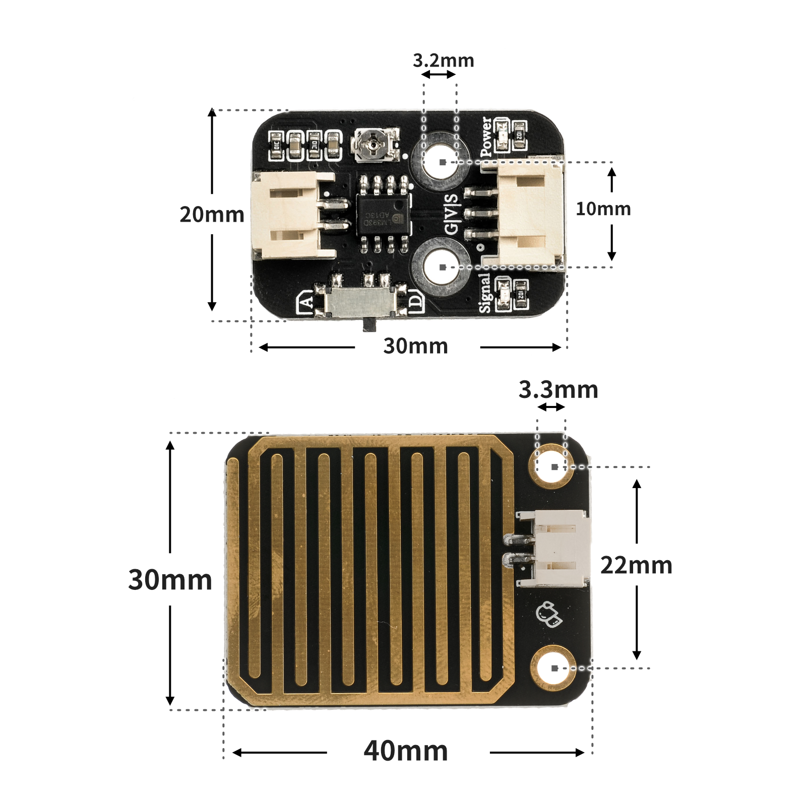 //轻轻调节雨滴A模块背部电位器,有雨水的情况下,A模块指示蓝灯亮起;