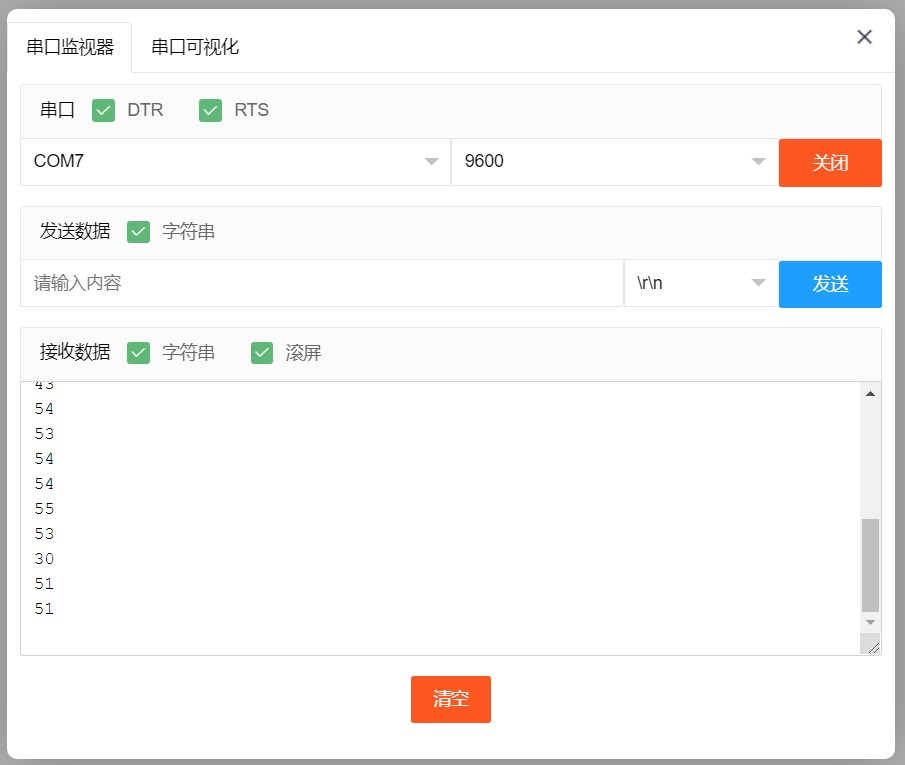 선을 연결한 장치를, 위의 프로그램을 Arduino UNO 개발 보드에 기록한 후, 시리얼 모니터를 열고,波特率为 9600으로 설정합니다。우ltrasonic 모듈 앞에 장애물을 두고, ultrasonic 모듈과 장애물 간의 거리(cm)를 측정할 수 있습니다。거리를 변경하면 장애물과 초음파 모듈 사이의 거리가 변경되고, 시리얼 포트에 표시된 거리 값이 변경됩니다。