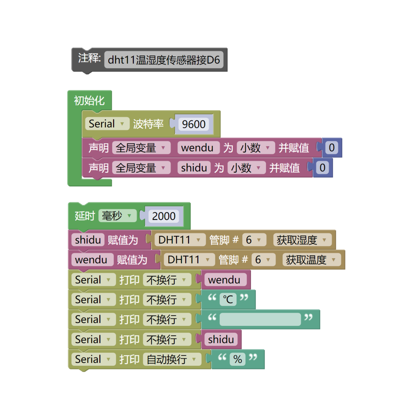 wendu = dht6.readTemperature();//将温度读取为摄氏度(默认值)赋给变量