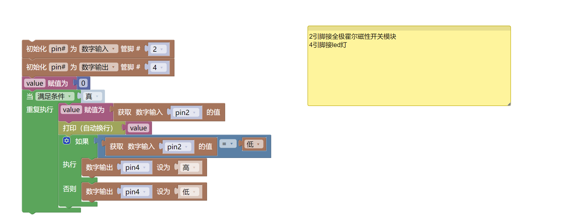 pin4.value(0)7、미스키 Mixly 예제 프로그램(그래픽 언어)