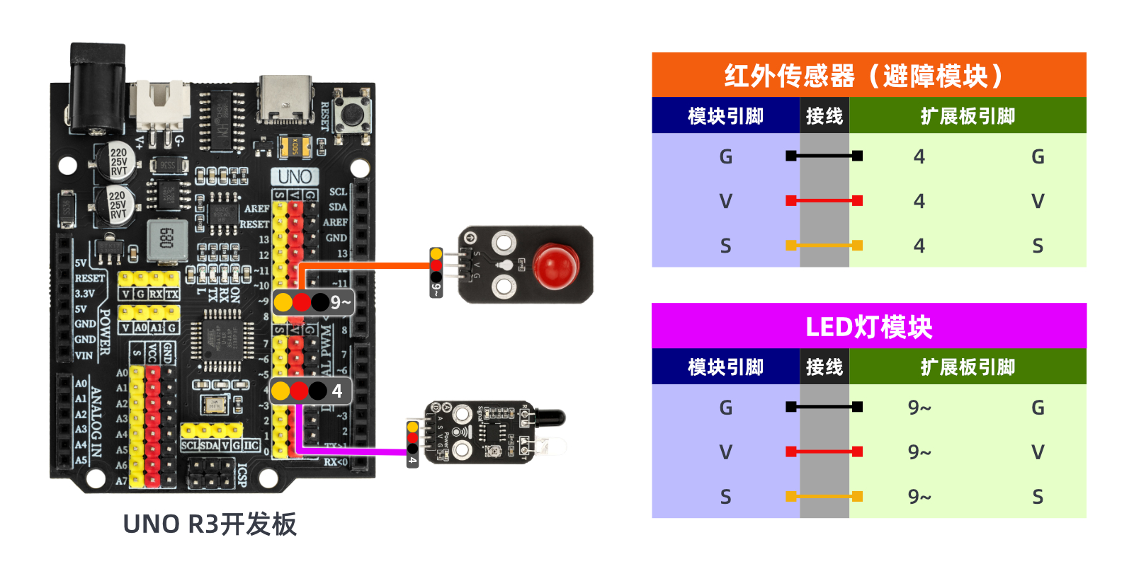 적외선 방해물 방지 모듈이 적외선의 작업 특성을 이용하여, 적외선 방해물 방지 모듈探头가 방해물을 감지할 때 저전압(0)을 출력합니다; LED 랜턴이 켜집니다. 적외선 방해물 방지 모듈探头가 앞쪽에 방해물을 감지하지 못할 때 고전압(1)을 출력하면, LED 램프가 꺼집니다.