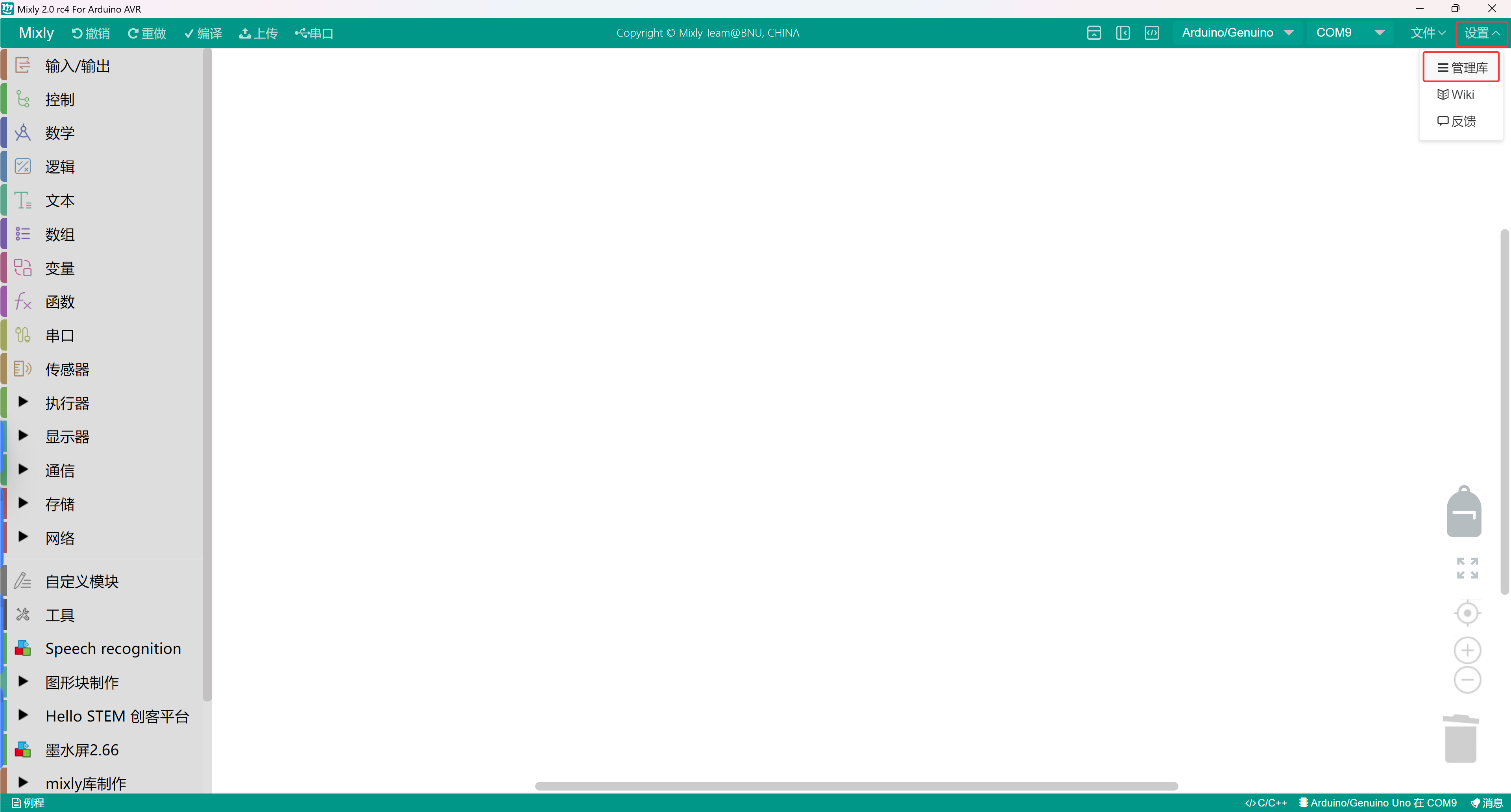 3、미스키 소프트의 상단 오른쪽의 설정을 클릭하여 라이브러리 관리를 클릭합니다。