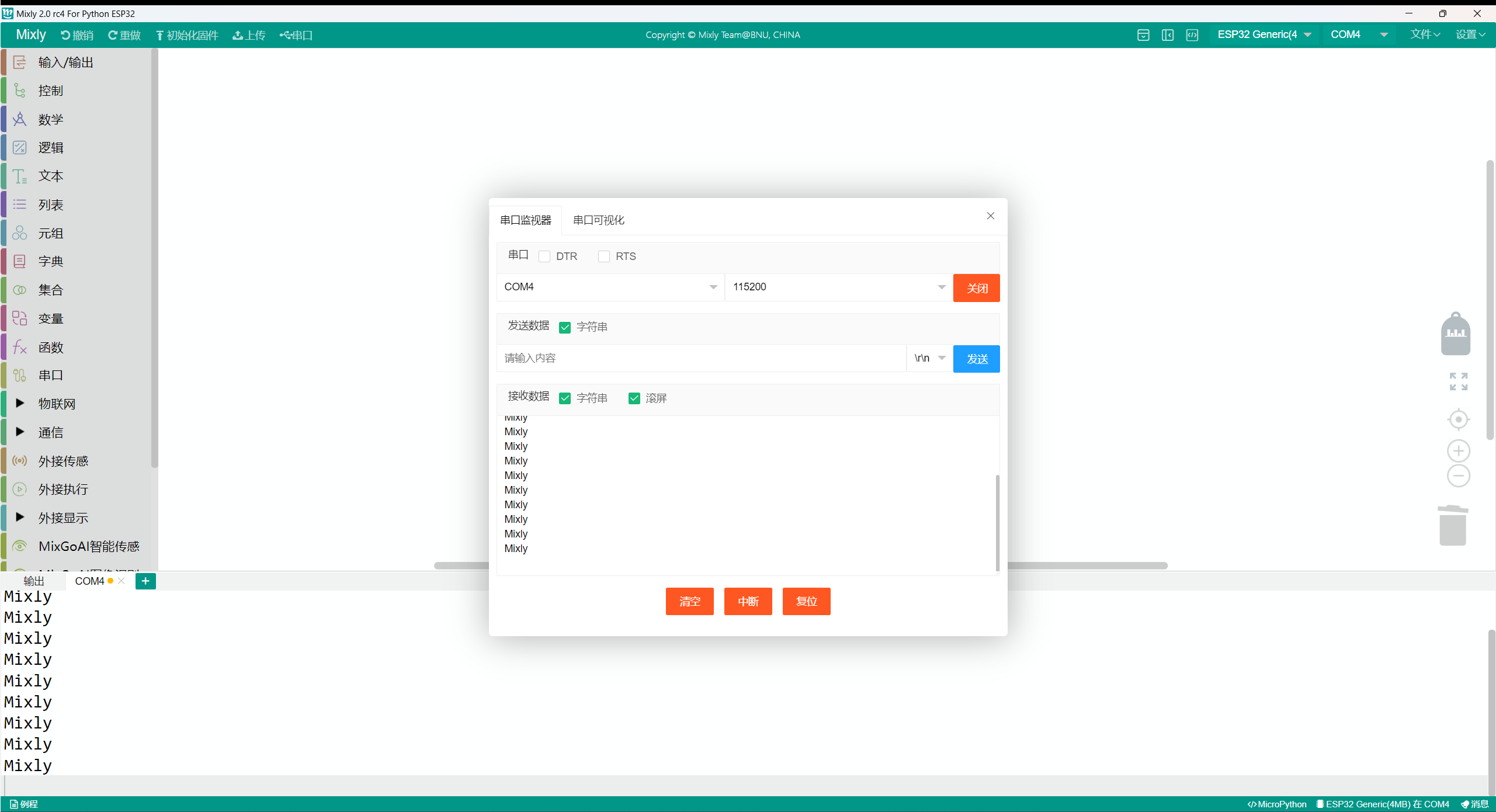 Mixly가 계속 출력되는 것을 볼 수 있습니다.