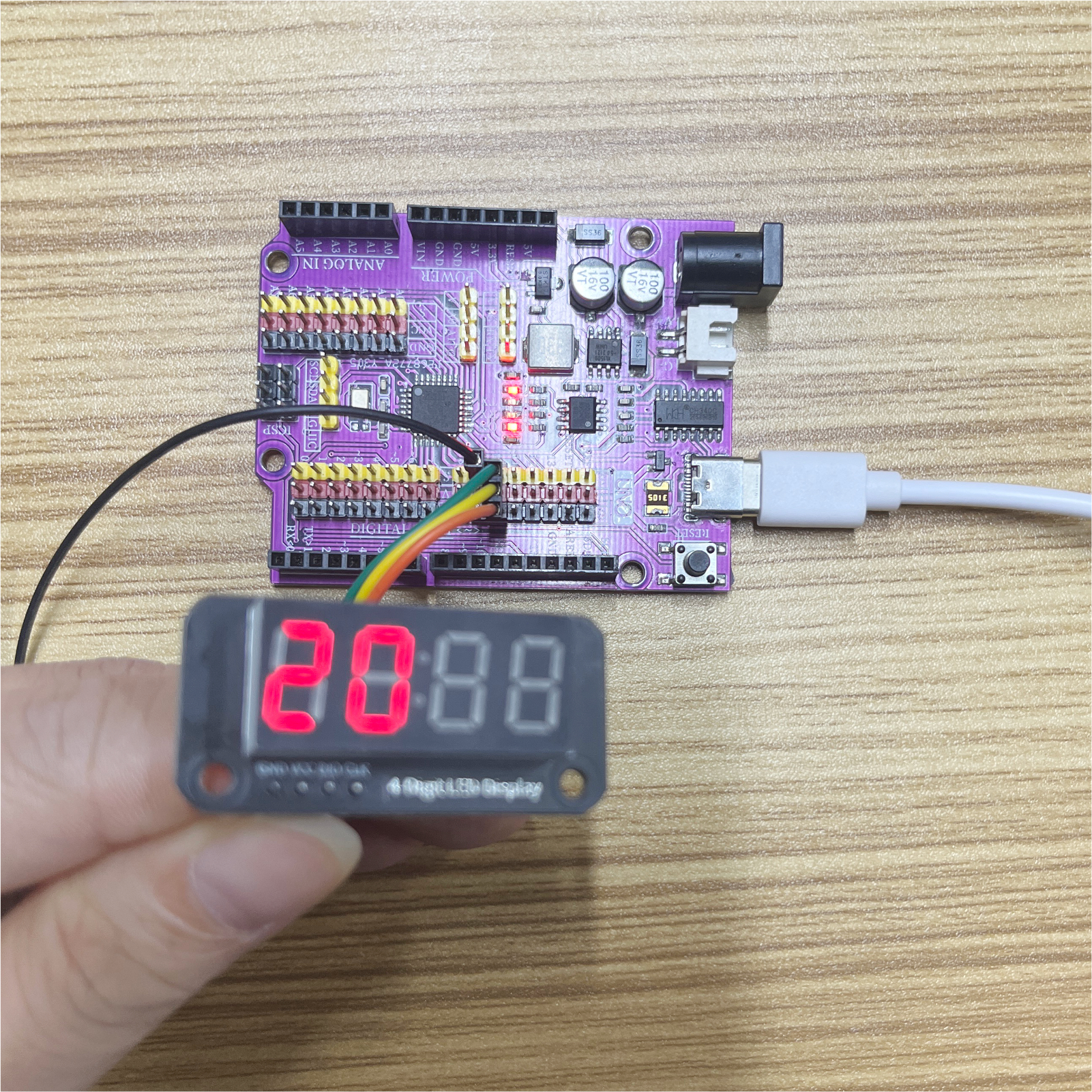 프로그램을 Arduino UNO 개발 보드에 업로드한 후, 30초逆계산이 시작되는 디지털管的를 볼 수 있습니다. 동시에 4자리 7segment 디지털管的가 몇 개의 LED를 켜고 끄는 것과 같은 효과를 얻을 수 있음을 이해합니다。