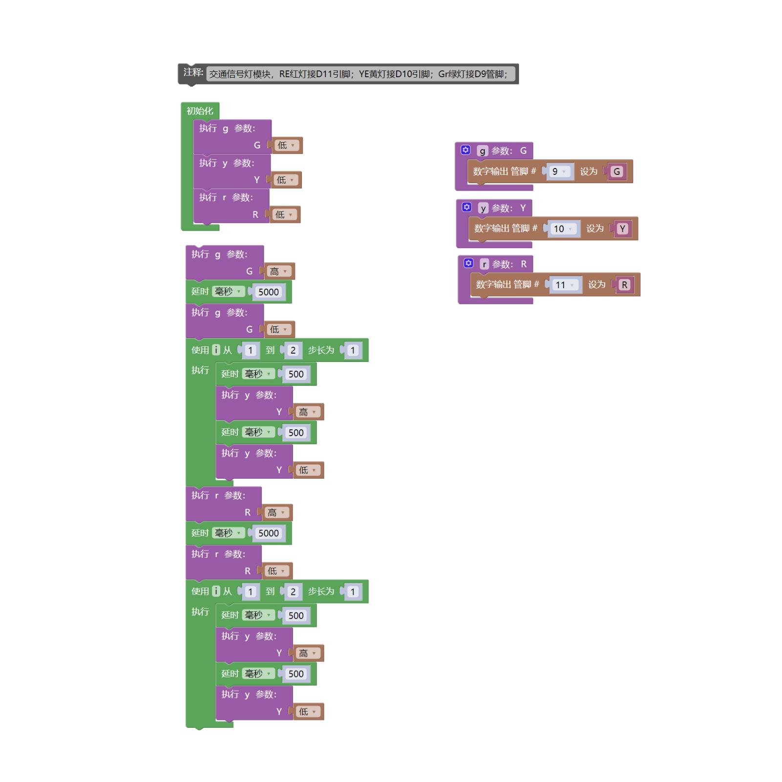 //交通信号灯模块,RE红灯接D11号引脚;YE黄灯接D10号引脚;Gr绿灯接D9号管脚;