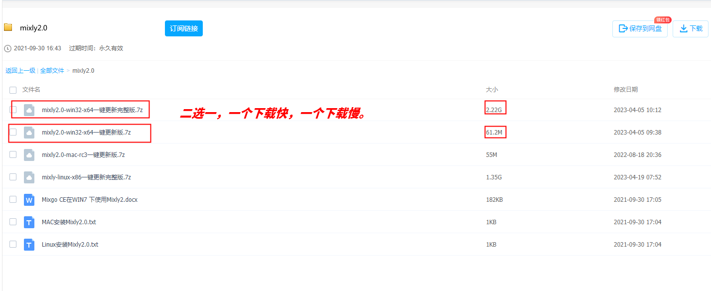 点击Mixly2.0RC3版,再点击Mixly2.0 RC网盘文件下载