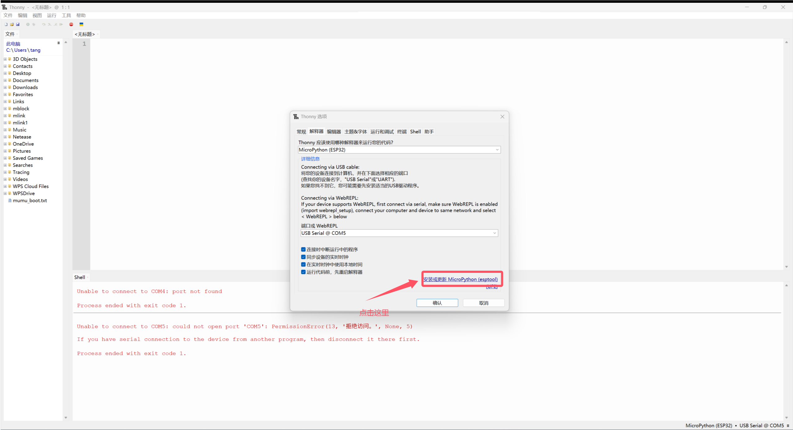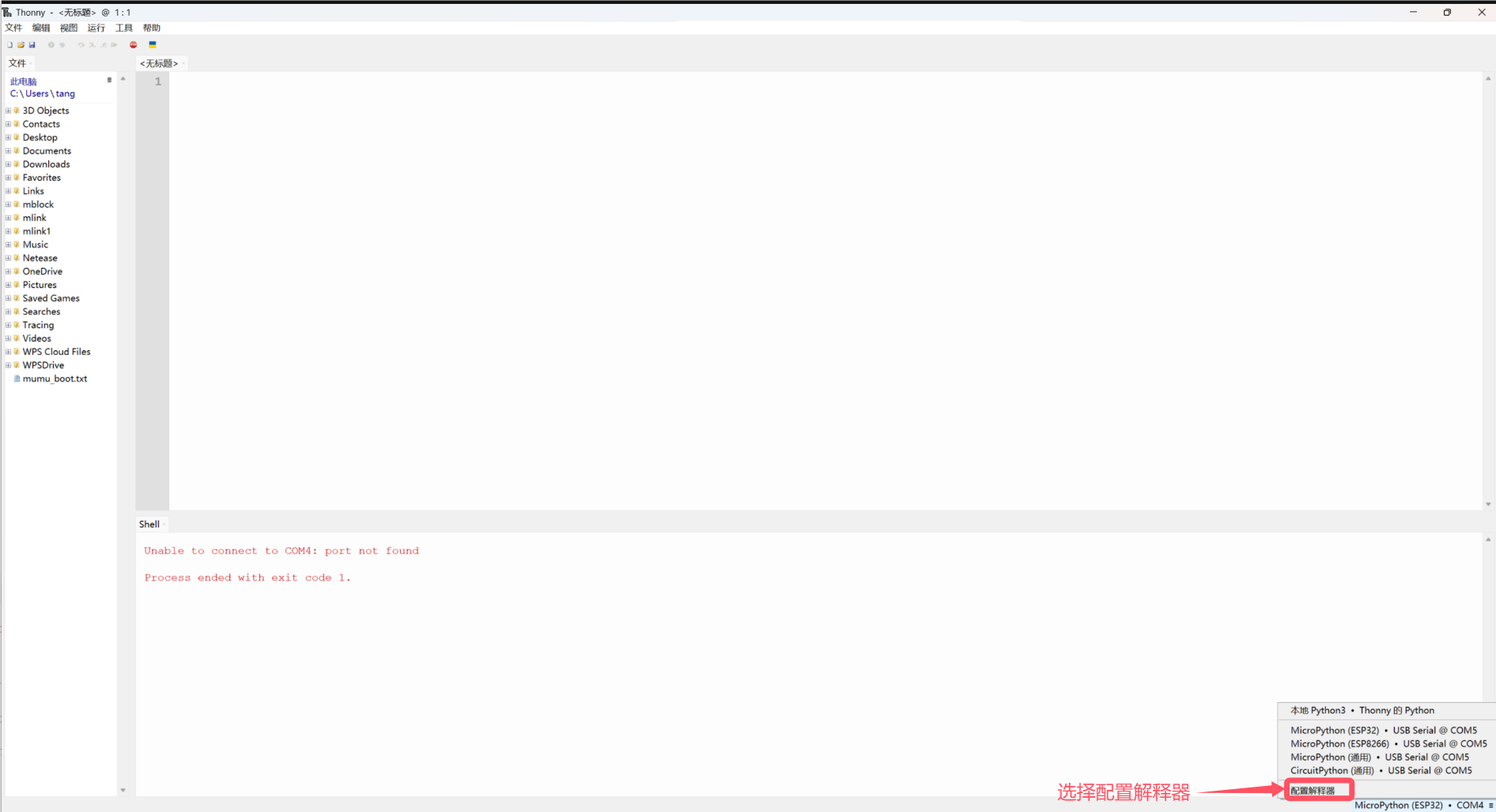 在点开文件选择符号,选择刚刚下载的micropython固件