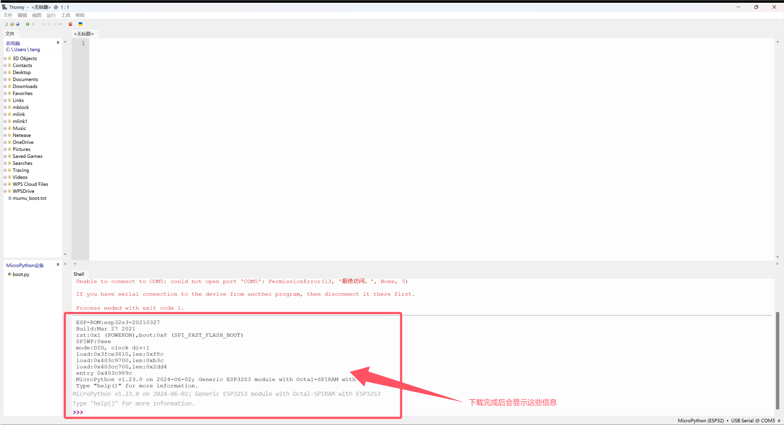 点击电脑桌面上的mixly图标来打开软件,选择Python ESP32-S3
