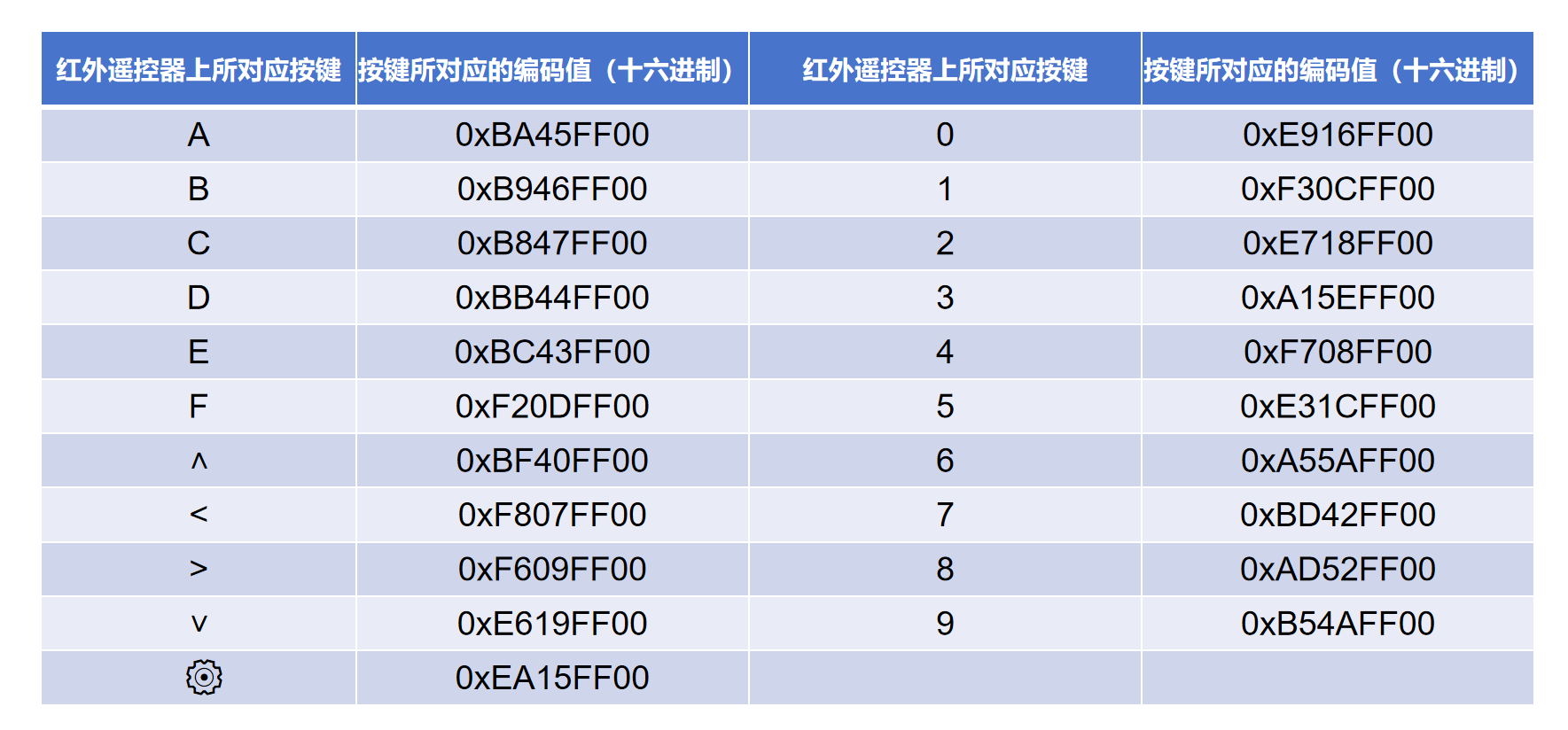 //按下遥控器“A”键编码值:BA45FF00。所以灯熄灭。