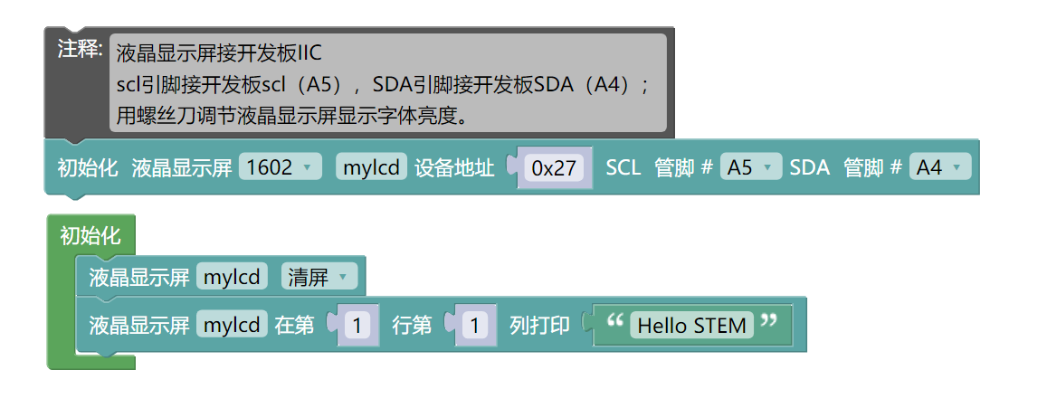 //scl引脚接开发板scl(A5),SDA引脚接开发板SDA(A4);