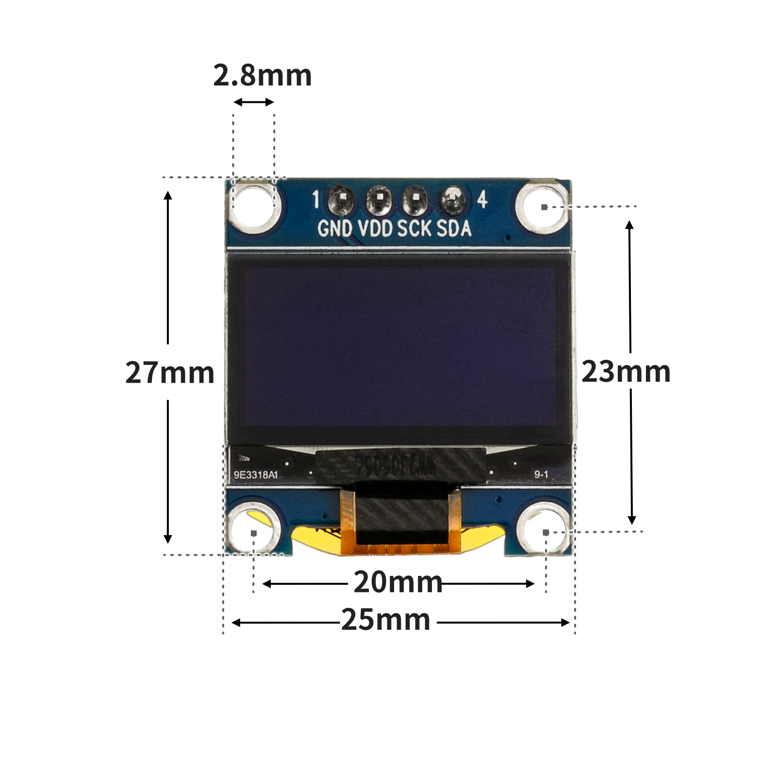 OLED( Organic Light- Emitting Diode.)有机发光二极管又称为有机激光显示、OLED显示技术具有自发光的特性、采用非常薄的有机材料涂层、和玻璃基板、当有电流通过时、这些有机材料就会发光、而且OLED显示屏幕可视角大、功耗低、OLED由于同时具备自发光、不需背光源(只上电是不会亮的、驱动程序和接线正确才会点亮)、对比度高、厚度薄、视角广、反应速度快、可用于挠曲面板、使用温度范围广、结构及制程等优异之特性、先接触的1286屏都是LCD的、需要背光、功耗较高而OLED的功耗低、更加适合小系统、由于两者发光材料的不在不同的环境中、OLED的显示效果好、模块供电可以是33V也可以是5V、不需要修改模块电路、OLED屏具有多个控制指令可以控制OLED的亮度、对比度、开关升压电路等指令、操作方便、功能丰富、可显示汉字、ASC、图案等。