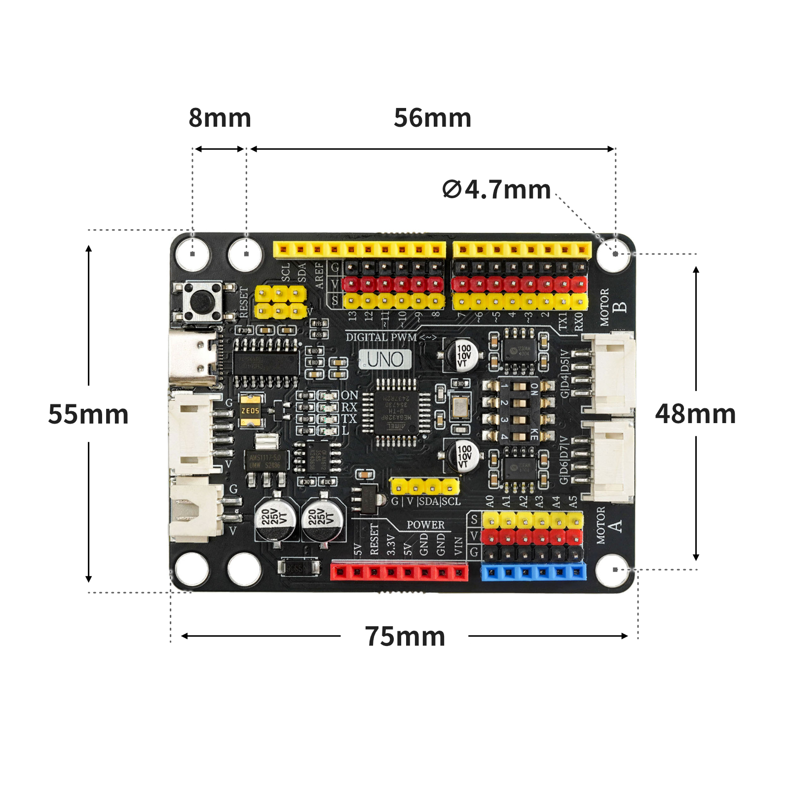 它還自帶 2.54 間距的 GVS 排釘擴展接口,使你能够方便地擴展更多感應器設備,為你的項目增添更多功能。
